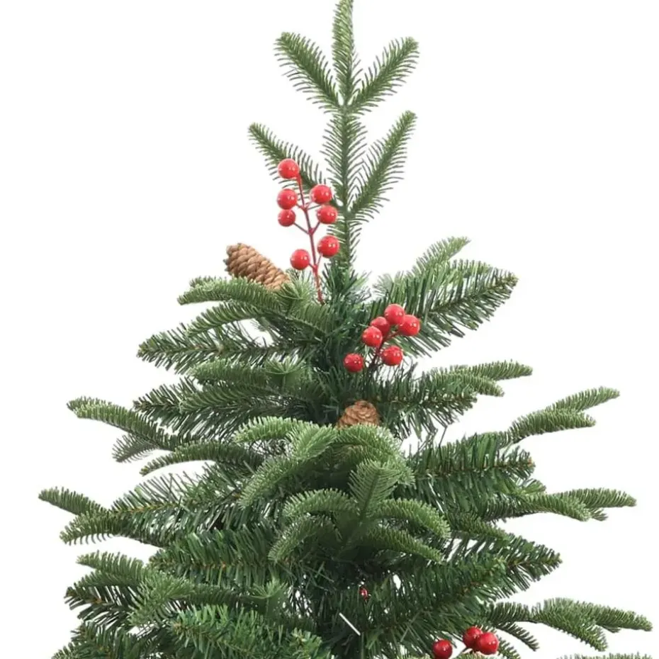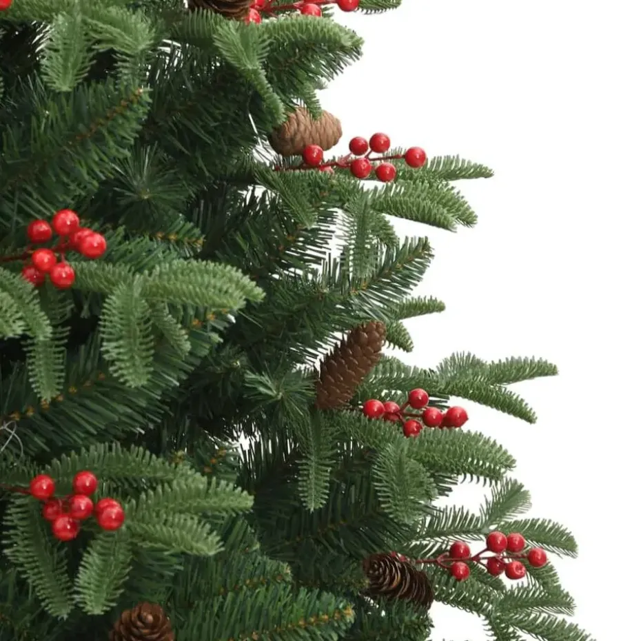- Prachtige decoratie: de kerstboom heeft dennenappels en bessen, waardoor een mooie natuurlijke uitstraling ontstaat.