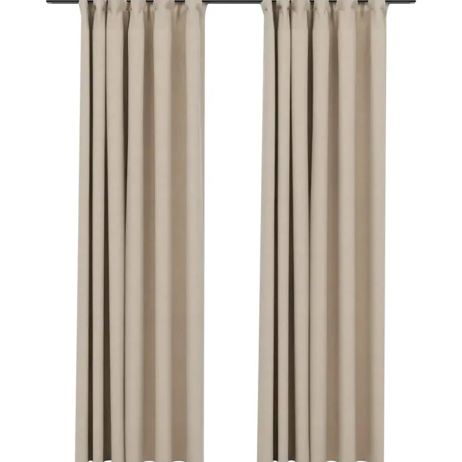 De gordijnen kunnen, dankzij de metalen haken, gemakkelijk aan de gordijnrails worden opgehangen. De gordijnen, gemaakt van hoogwaardig 100% polyester met linnen-look, zijn in de wasmachine wasbaar. Let op, de gordijnroede is niet inbegrepen.