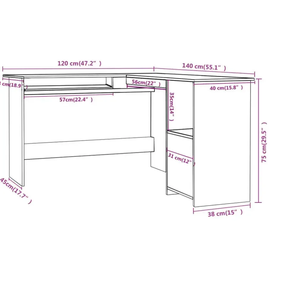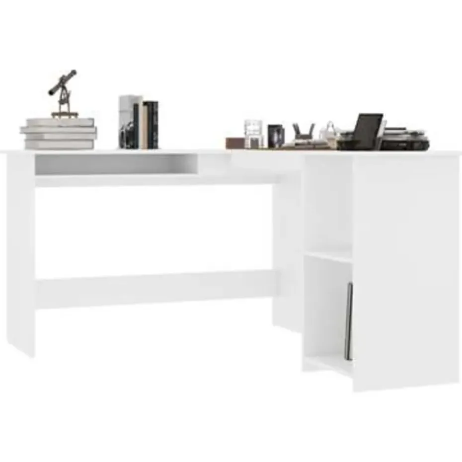 Dit L-vormige, moderne hoekbureau, ontworpen met een uitschuifbaar toetsenbordgedeelte en 2 open schappen, is zeer praktisch en is de blikvanger van je kantoor of werkkamer.