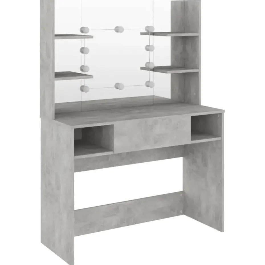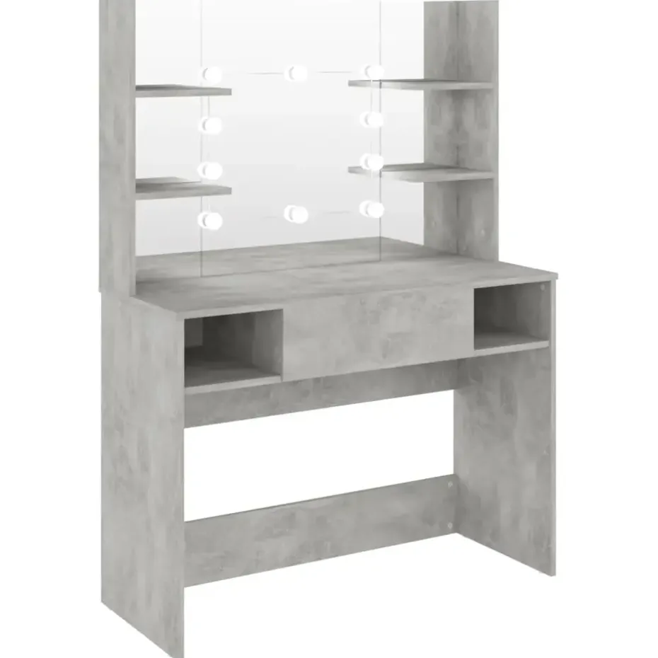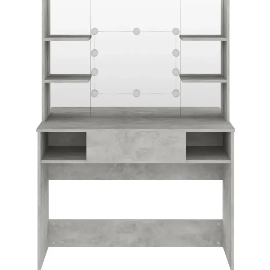 Deze kaptafel, gemaakt van MDF, heeft een strak en beknopt silhouet met een moderne stijl. Hij biedt voldoende ruimte voor make-upartikelen en houdt alles op zijn plaats. Kaptafelspiegel: de prachtige spiegel biedt duidelijk zicht om je make-up aan te brengen en voegt een vleugje elegantie toe aan de kaptafel. De afgebeelde elegante LED-lampen verlichten ook je schoonheid.