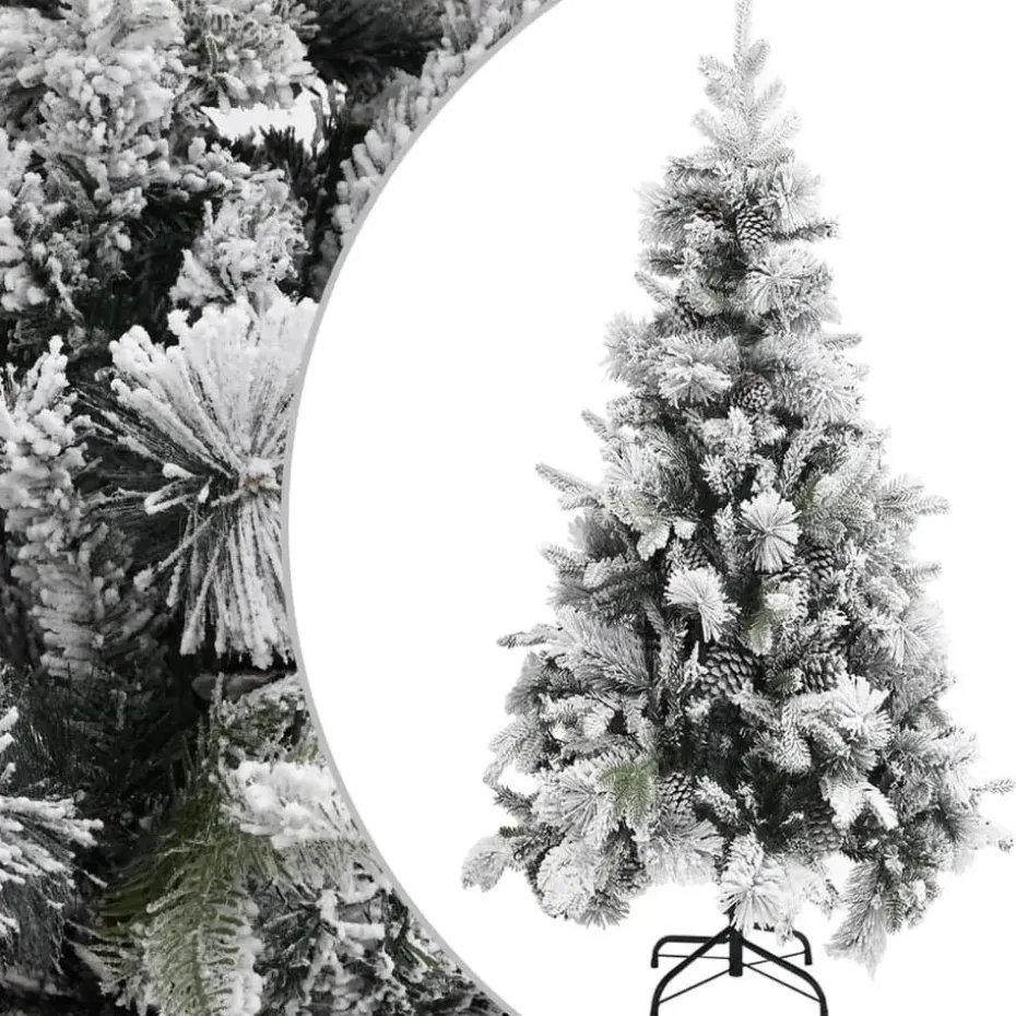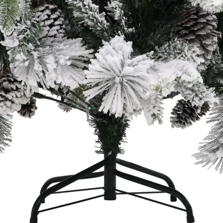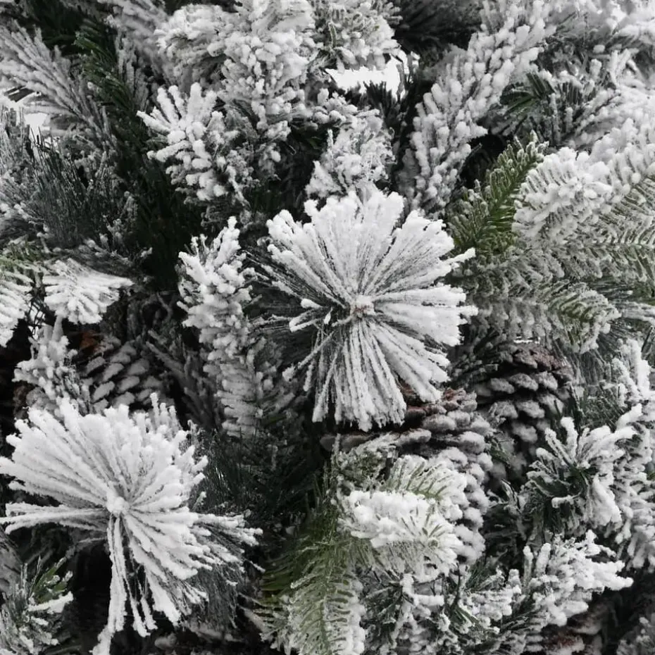 Deze prachtige kerstboom heeft takken die van PVC en PE zijn gemaakt. De boomtakken worden met een scharniersysteem aan de middenpaal bevestigd. Door de scharnieren beweging de takken zich automatisch naar de juiste positie. De dennenappels en witte sneeuw op de naalden dragen bij aan de elegantie van deze kerstboom. De inbegrepen, stalen standaard geeft je boom optimale stabiliteit.