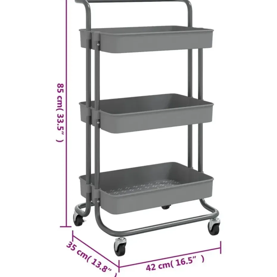 Deze huishoudelijke trolley, met praktisch handvat, is gemaakt van sterk ABS-kunststof met ijzeren buizen, waardoor hij stevig en duurzaam is. Ook heeft de ruimtebesparende kar 4 wielen, waarvan 2 met remmen voor eenvoudig verplaatsen en vastzetten. De uitneembare manden zijn sterk genoeg om extra opbergruimte te bieden en de ruimte volledig te benutten. Daarnaast is de trolley ideaal voor het opbergen van speelgoed, sleutels, etenswaren, enz.