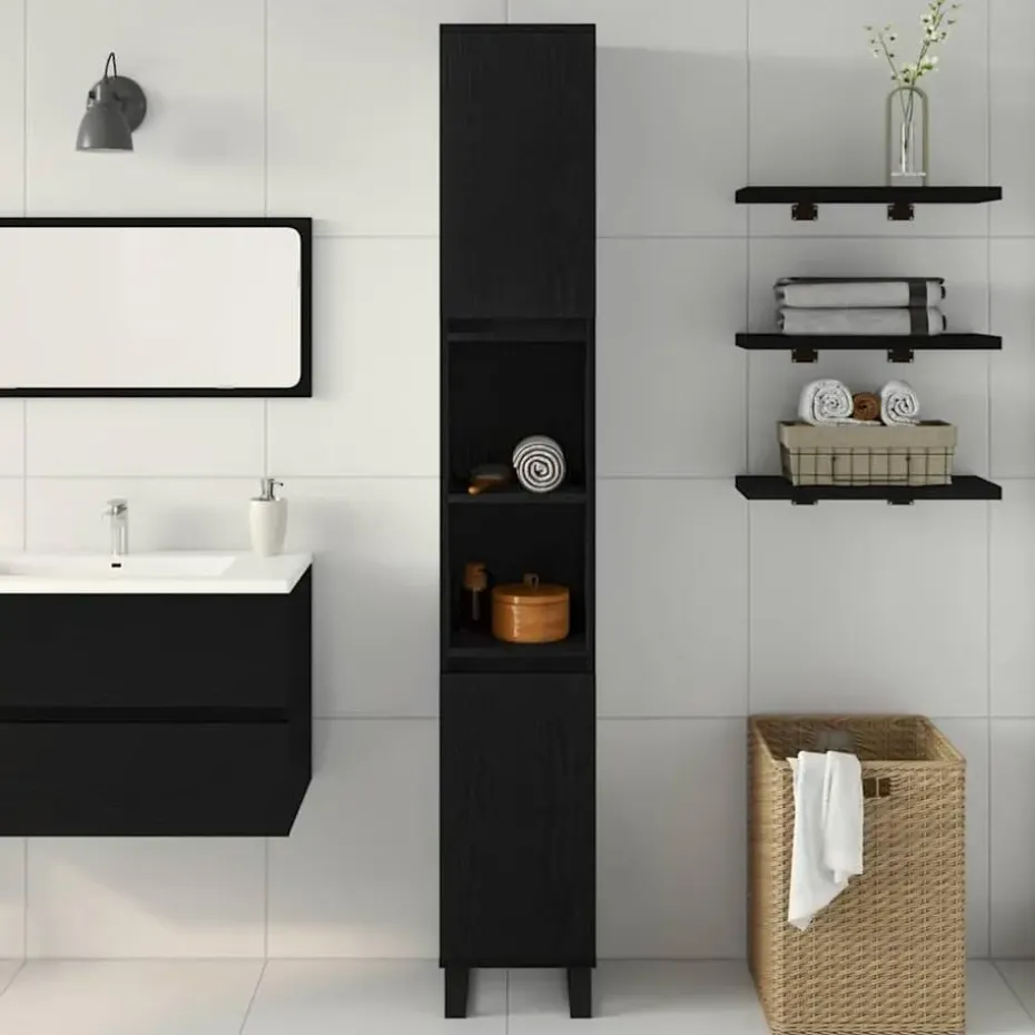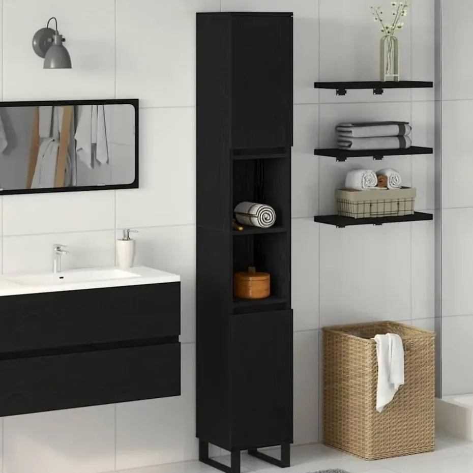 - Bewerkt Houten Constructie: Gemaakt van hoogwaardig, bewerkt hout dat lang meegaat en bestand is tegen vocht en temperatuurwisselingen in de badkamer. Het is stevig en houdt al je spullen veilig, ongeacht het seizoen.