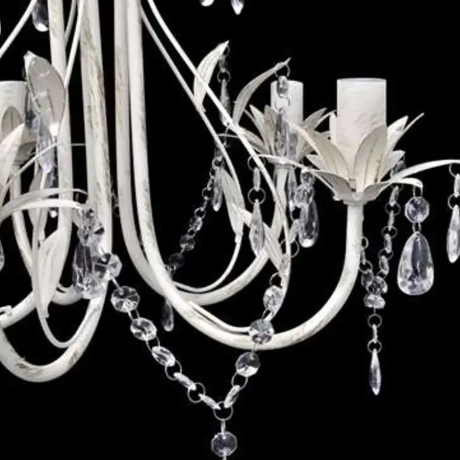 Deze prachtige witte en elegante kristallen kroonluchter, met 5 lampen, heeft een klassiek design, ideaal voor elk huis! Dankzij de koninklijke kristallen zult uw huis prachtig verlicht worden. Daarnaast kunt u uw kamer omtoveren tot een luxe kamer zonder veel te hoeven spenderen. De lamp heeft een afmeting van 46 x 42,5 cm (diameter x h).
