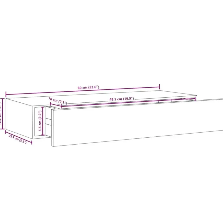 - Afmetingen: 60 x 23,5 x 10 cm (B x D x H)