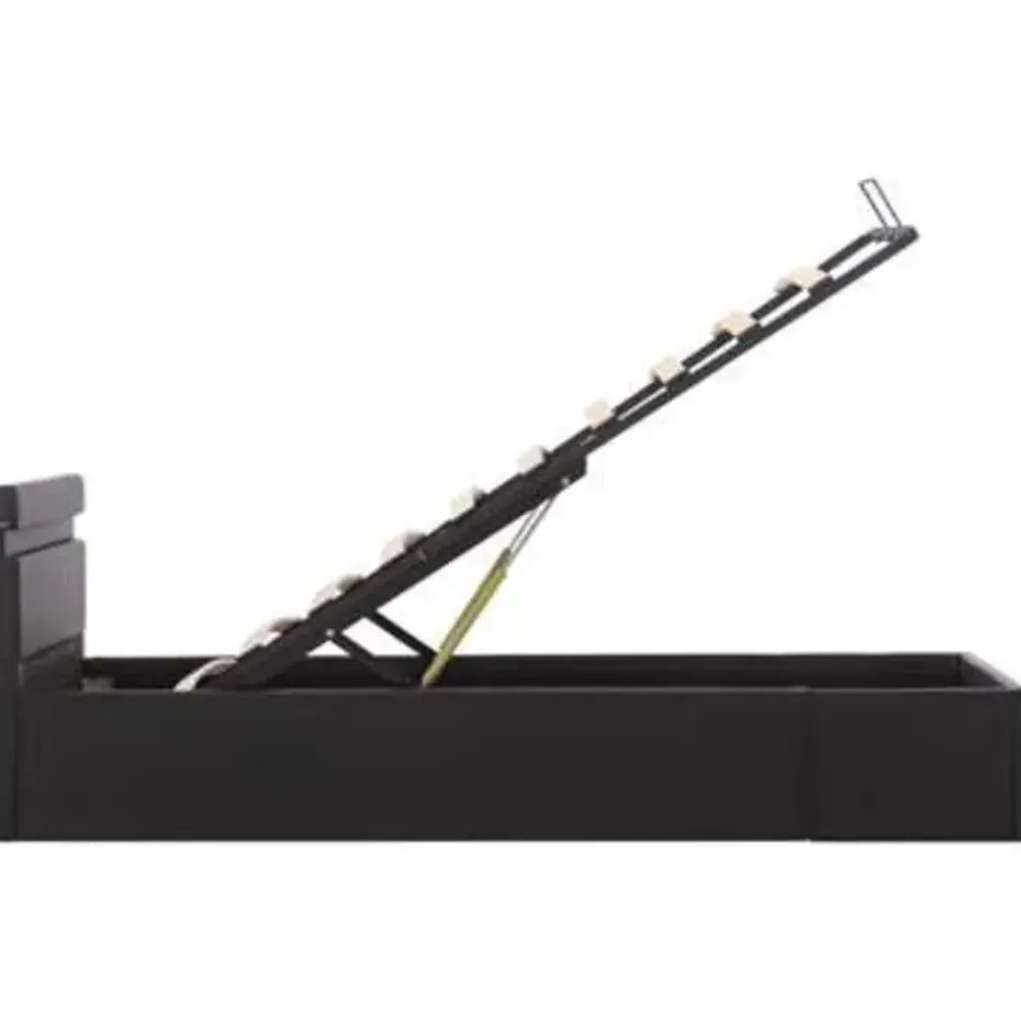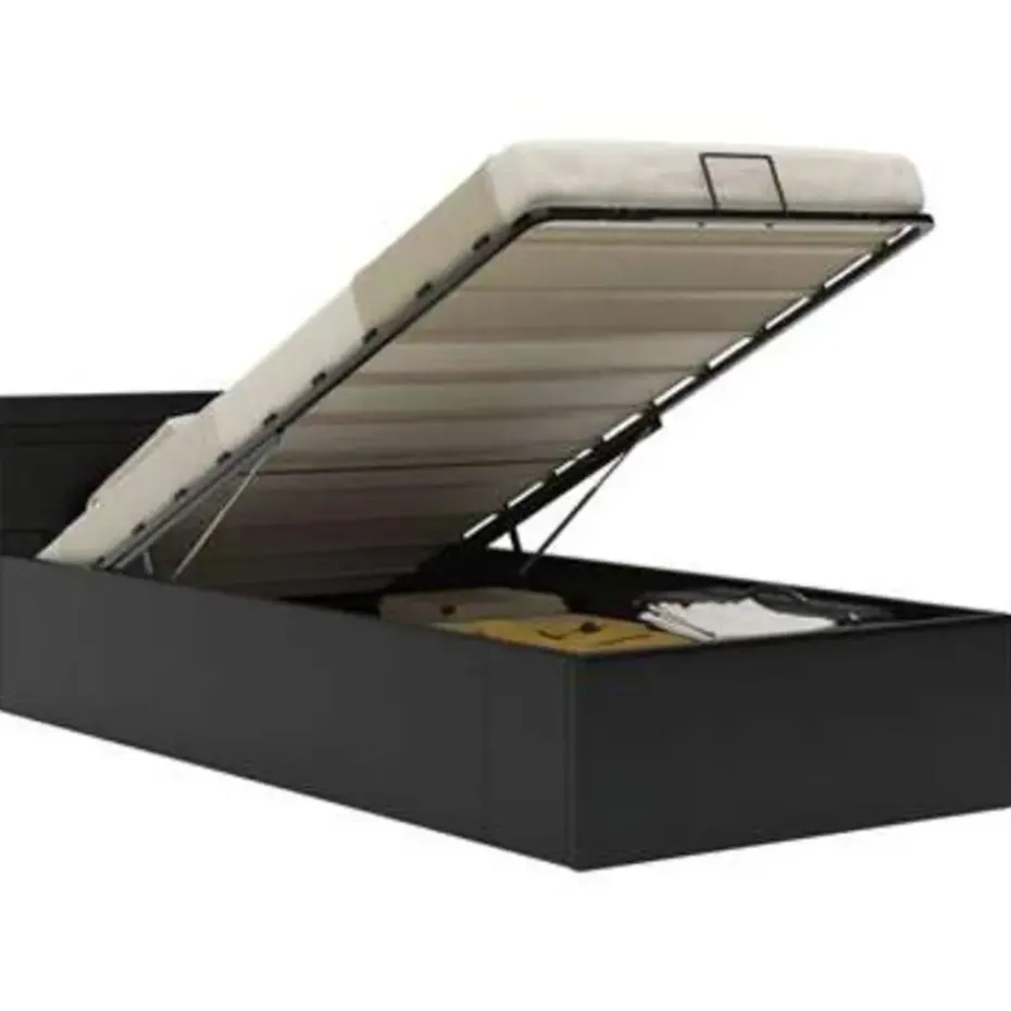 Dit beklede bed verandert de ongebruikte ruimte onder je matras in opbergruimte. Zo heb je voldoende ruimte voor het opbergen van kleding, dekens, beddengoed, enz. Het hydraulische frame blijft omhoog staan als hij omhoog is getild, zo heb je beide handen vrij om spullen op te bergen of te pakken.