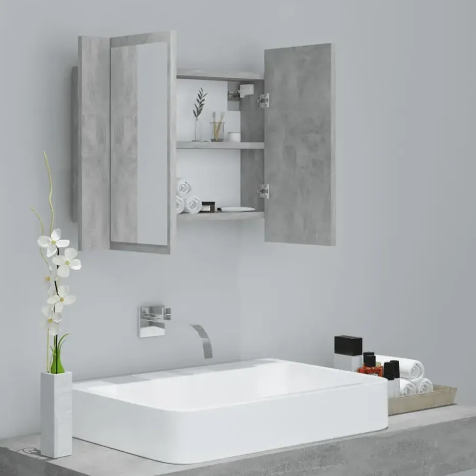 De badkamerkast is voorzien van een RGB-verlichting, waardoor de kleur van de LED kan worden veranderd. De 2 schappen in de kast bieden extra ruimte om toiletartikelen en badartikelen, zoals zeep, shampoo en tandpasta, op te bergen. Dit meubel is gemakkelijk schoon te maken met een vochtige doek.