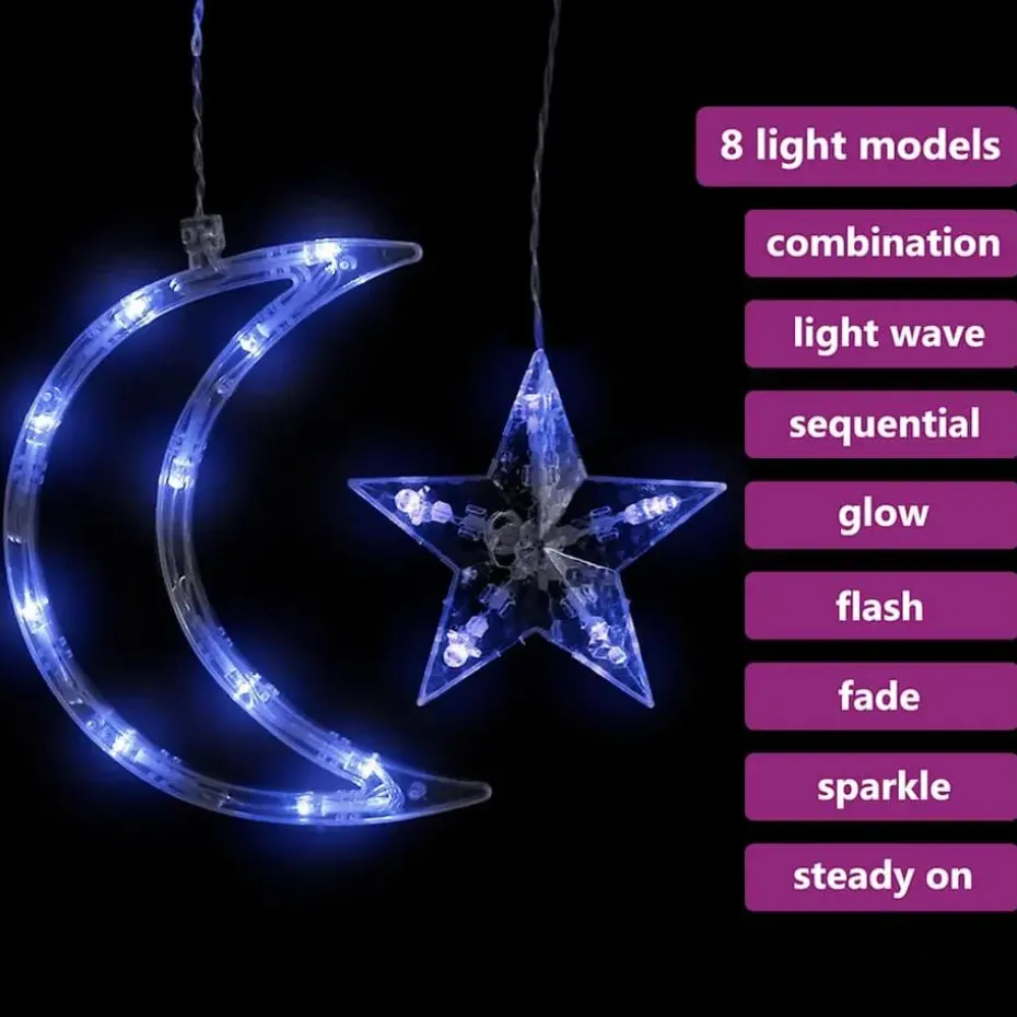 De lichtslinger met sterren en manen is de perfecte toevoeging aan elk decoratief project. De verlichting is geschikt voor Kerstmis, feestjes, bruiloften en andere feestdagen.