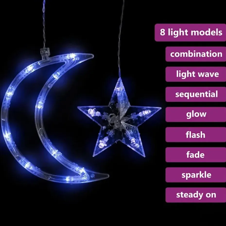 De lichtslinger met sterren en manen is de perfecte toevoeging aan elk decoratief project. De verlichting is geschikt voor Kerstmis, feestjes, bruiloften en andere feestdagen.