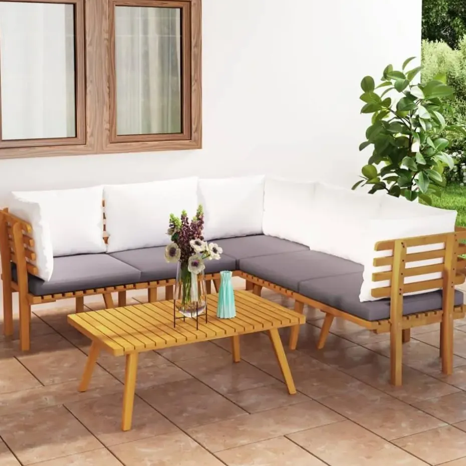 Deze tuinmeubelset is gemaakt van massief acaciahout waardoor hij weerbestendig en zeer duurzaam is. In combinatie met de dik gevoerde kussens biedt deze tuinloungeset optimaal comfort. Je kunt hem combineren met andere modulaire segmenten om zo je eigen persoonlijke loungeset samen te stellen!