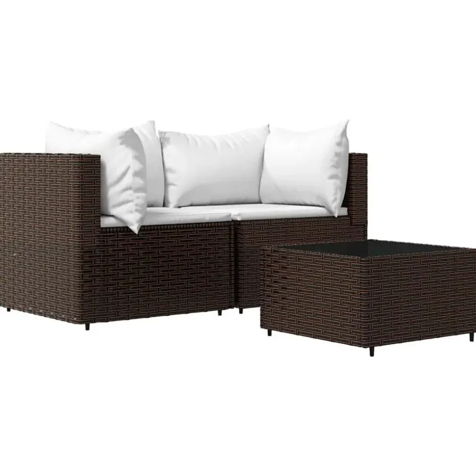 - Materiaal: PE-rattan, gepoedercoat staal, stof (100% polyester) en gehard glas