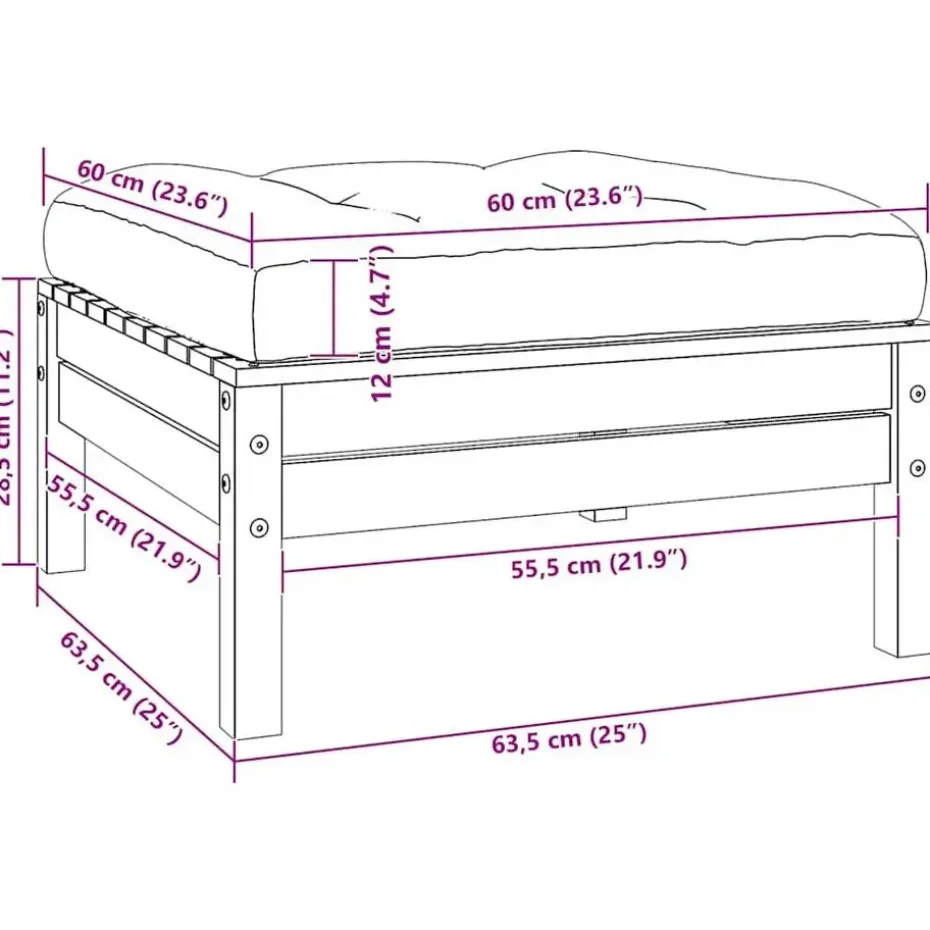 - Afmetingen voetenbank: 63,5 x 63,5 x 28,5 cm (B x D x H)