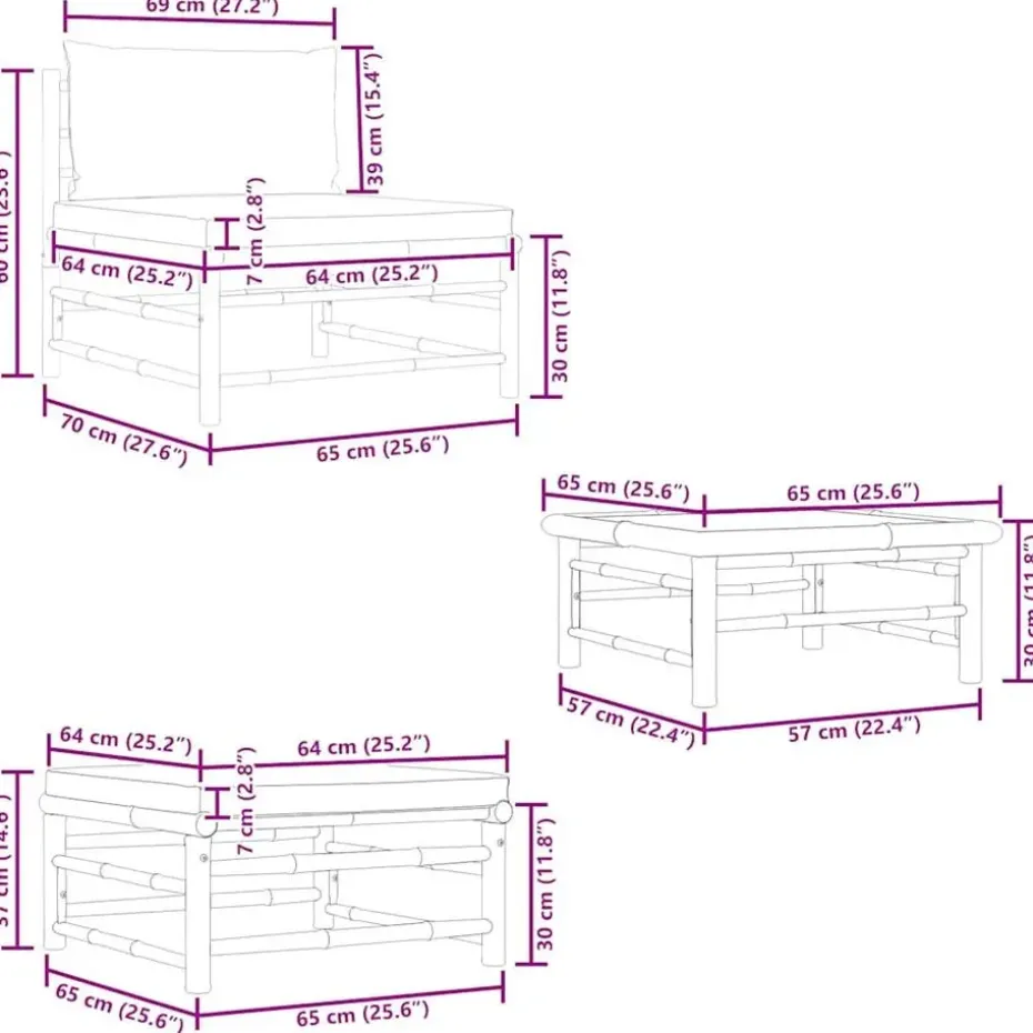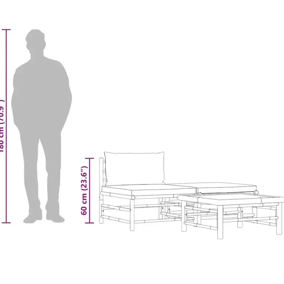 Deze loungeset is gemaakt van bamboe waardoor hij stevig en gemakkelijk schoon te maken is. De dik gevoerde zit- en rugkussens bieden extra comfort tijdens het loungen. Daarnaast kan je je voeten laten rusten op de voetensteun. De bijzettafel is perfect voor het plaatsen van drankjes en snacks. De set is eenvoudig te verplaatsen door de lichtgewicht constructie. Het modulaire ontwerp maakt het mogelijk om de set in elke gewenste samenstelling te plaatsen.
