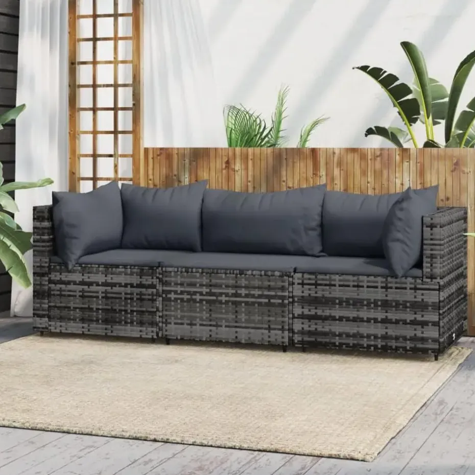 - Materiaal: PE-rattan, gepoedercoat staal en stof (100% polyester)