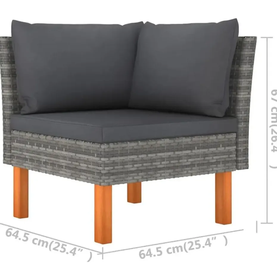 De set heeft een gepoedercoat stalen frame bedekt met PE-rattan waardoor hij weerbestendig en gemakkelijk schoon te maken is. De massief eucalyptushouten poten dragen bij aan de stevigheid en stabiliteit. De tuinset wordt geleverd met dik gevoerde kussens voor ultiem comfort. De kussenhoezen hebben een rits zodat ze afneembaar en wasbaar zijn. De tuinmeubelset heeft een lichtgewicht constructie waardoor hij eenvoudig te verplaatsen is.