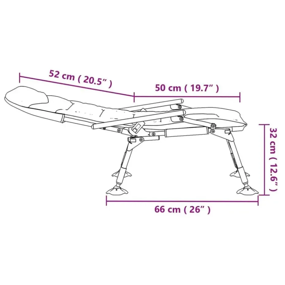 - Duurzaam en stevig: de visstoel is gemaakt van staal met een poedercoating, wat zorgt voor duurzaamheid en stevigheid voor langdurig gebruik.