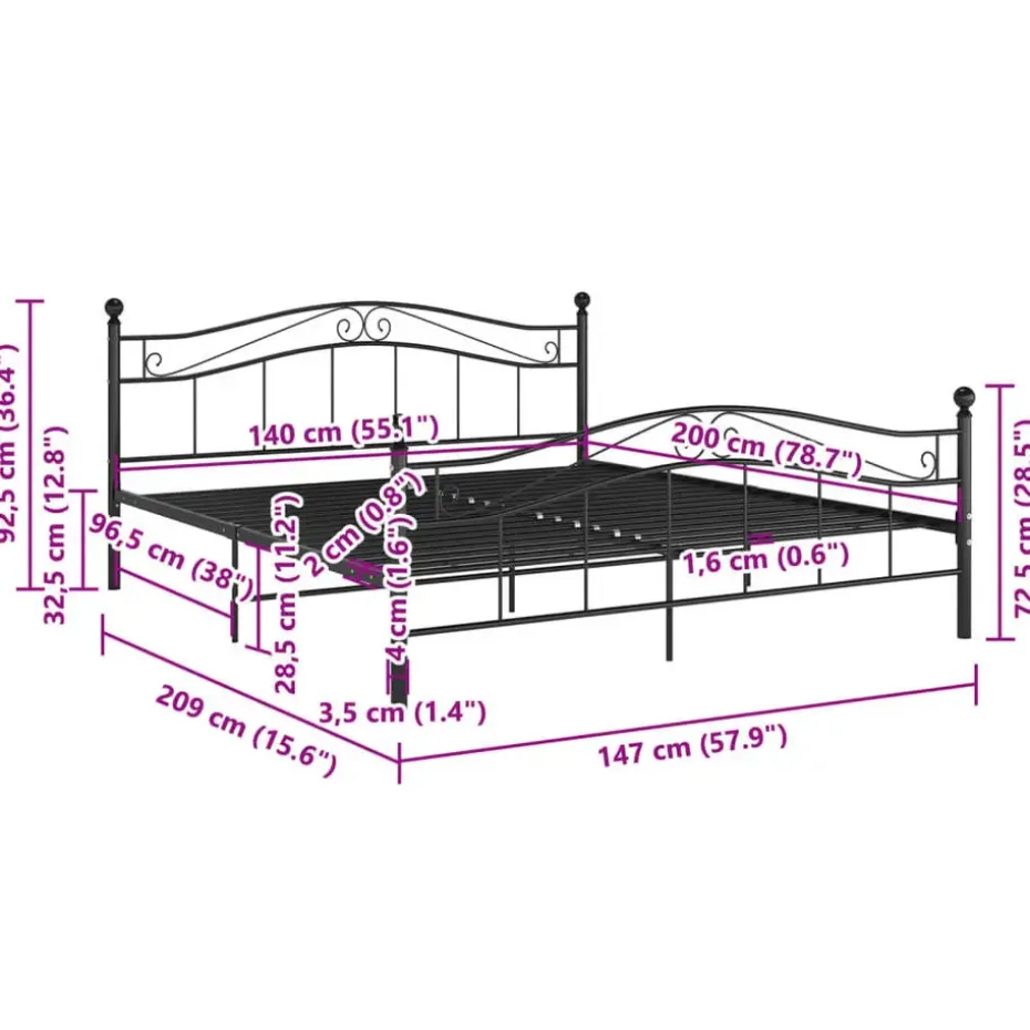 Dit tweepersoonsbed heeft een massieve constructie van gepoedercoat metaal, waardoor het buitengewoon stevig en duurzaam is. De stevige lattenbodem biedt de nodige ondersteuning en comfort. In dit bed geniet je elke nacht van een heerlijke nachtrust!