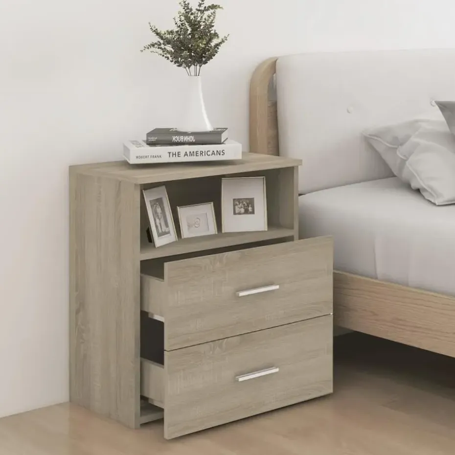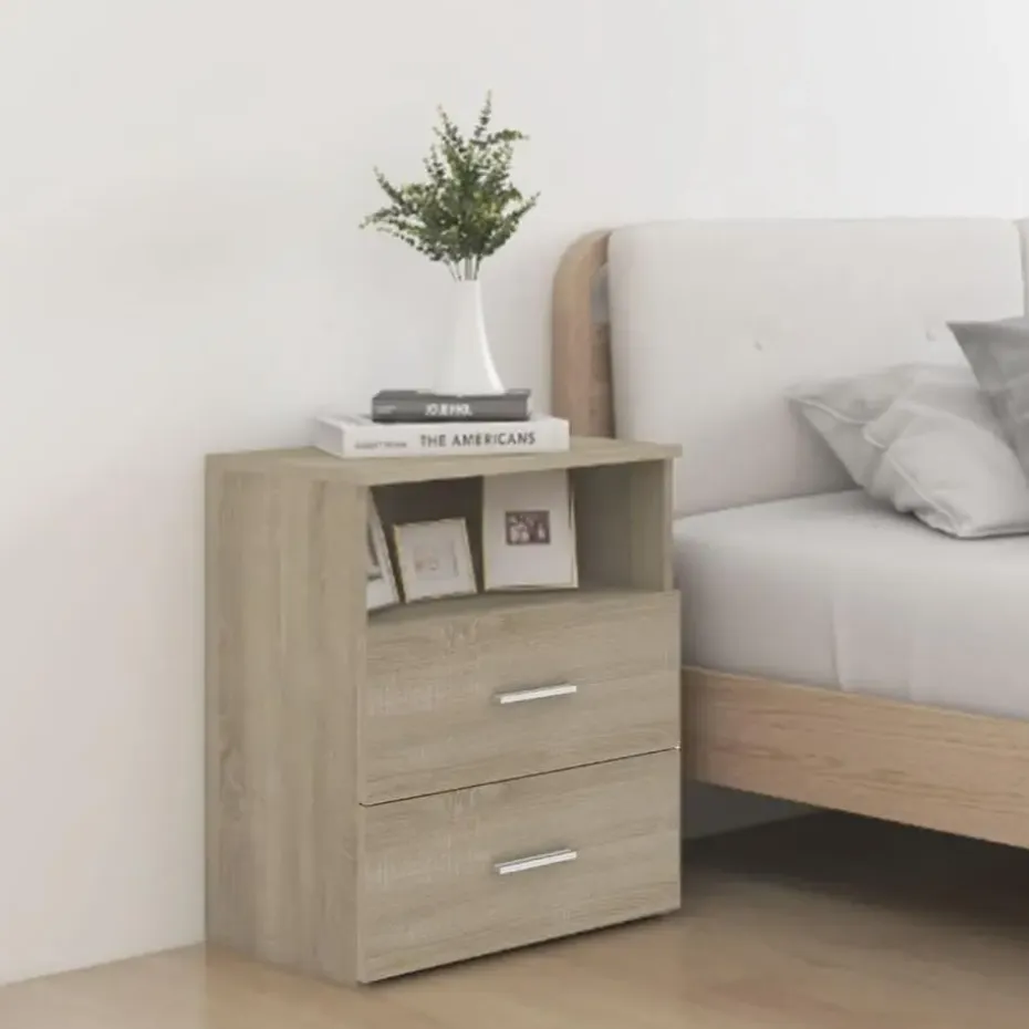 Het nachtkastje is stabiel en stevig. Daarnaast is het uitgerust met 2 lades en een schap, die voldoende opbergruimte bieden om je spullen overzichtelijk en binnen handbereik te houden. Het kastje is gemakkelijk schoon te maken met een vochtige doek.