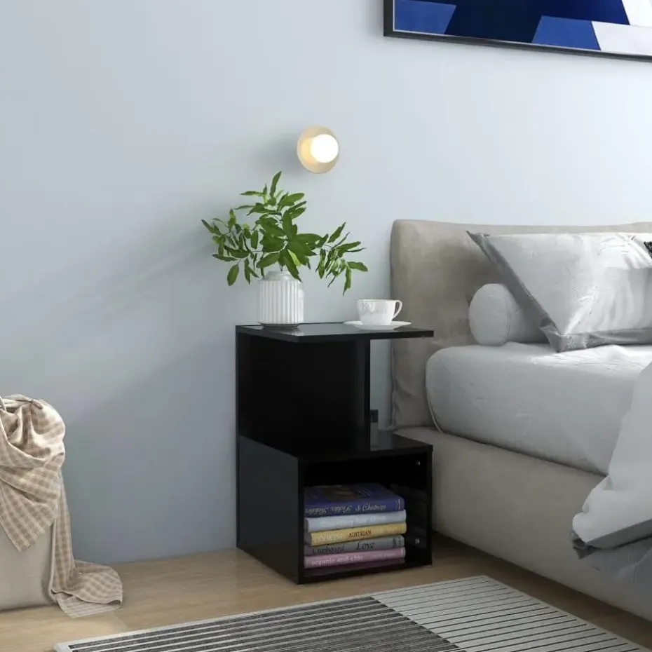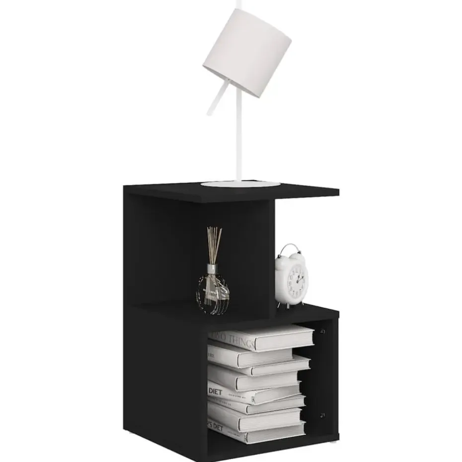 Het stabiele bedtafeltje met open vakken biedt voldoende ruimte om je tijdschriften, boeken, afstandsbedieningen en andere spullen overzichtelijk en binnen handbereik te houden. Het stevige blad is perfect voor het plaatsen van decoratieve spulletjes, zoals fotolijstjes en potplanten. Dit meubel is gemakkelijk schoon te maken met een vochtige doek.