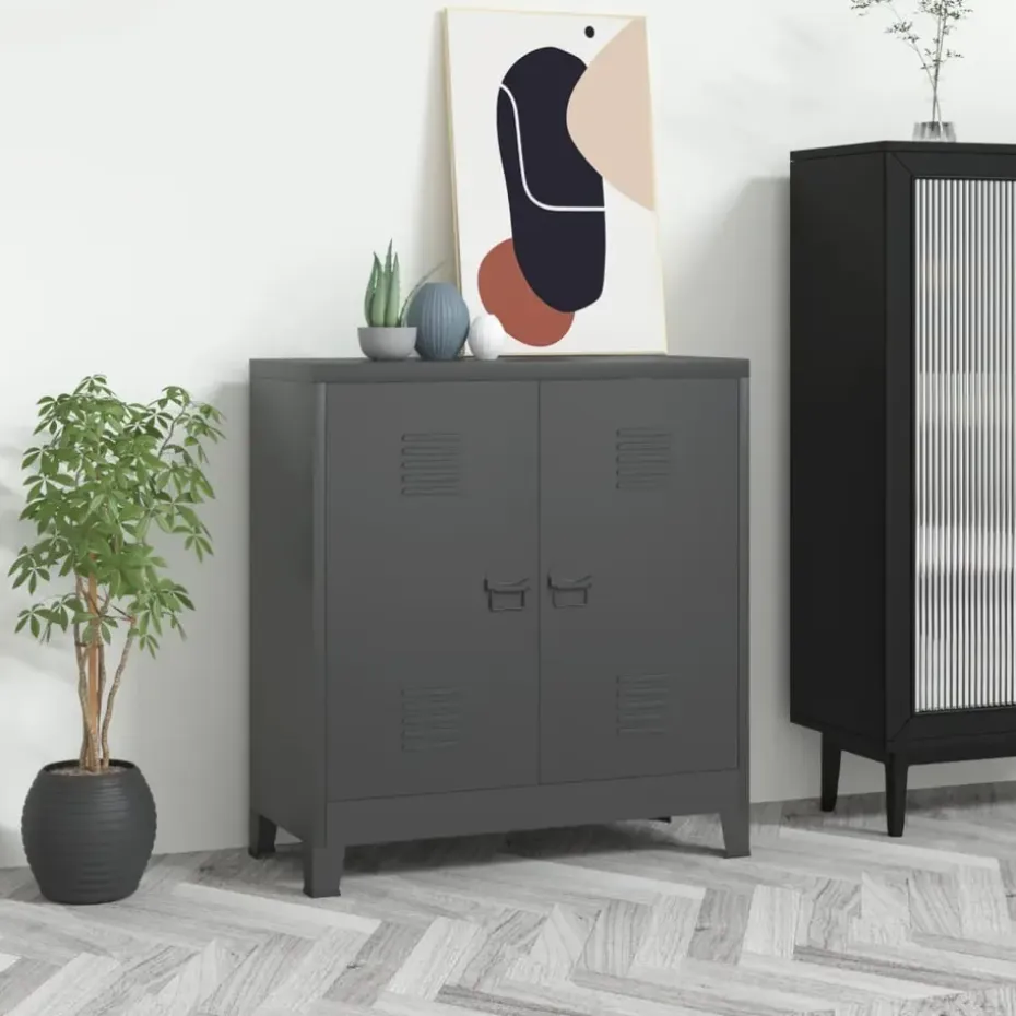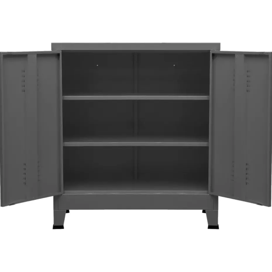 Dankzij de 2 schappen en de labelhouders op de deuren berg je in deze opbergkast je documenten netjes op in verschillende categorieën. Hij past bij iedere kantoorinrichting dankzij het iconische ontwerp en de industriële charme. De stalen poten met kunststof doppen beschermen je vloer tegen krassen. Deze kast is gemaakt van staal, waardoor hij zowel duurzaam als makkelijk schoon te maken is. Elke deur is voorzien van een labelhouder en ventilatieopeningen. Hierdoor wordt de industriële stijl benadrukt en kun je je spullen netjes opbergen.