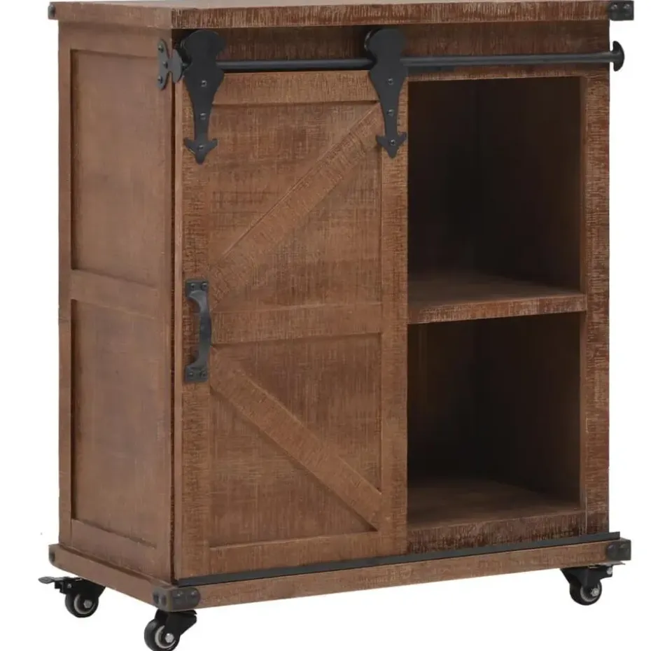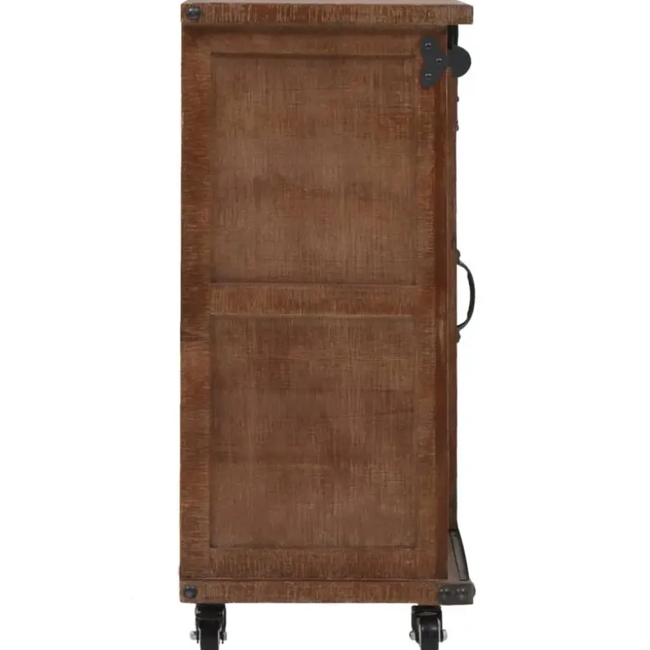 Deze zeer stabiele en duurzame kast is vervaardigd van massief vurenhout, dat een vintage charme uitstraalt en de tafel rustieke kenmerken geeft. De kast biedt voldoende ruimte om verschillende spullen overzichtelijk te houden. Het unieke ontwerp van de glijrail helpt om de deur gemakkelijk te openen en te sluiten en draagt ook bij aan de vintage en industriële stijl. De kast is ontworpen met 4 flexibele zwenkwielen waardoor de tafel eenvoudig door het huis te verplaatsen is.