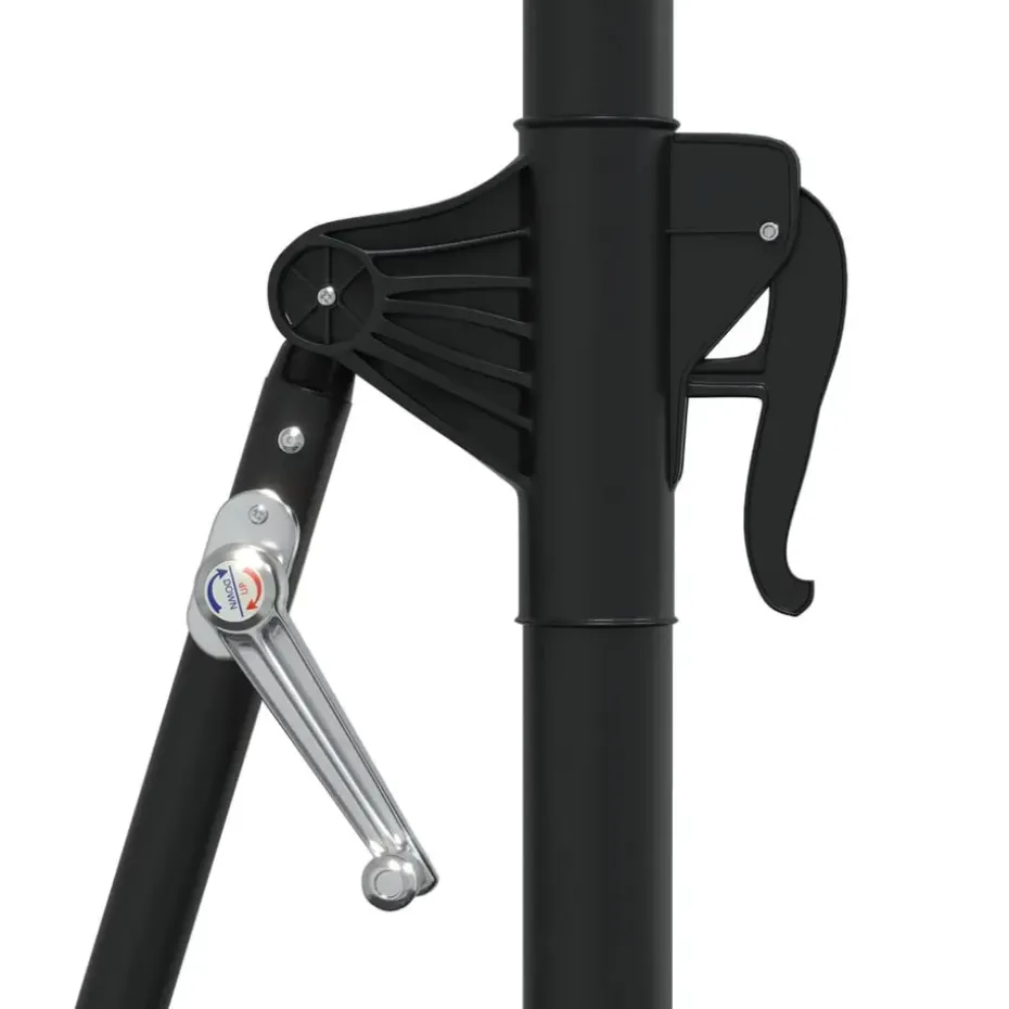 Het parasoldoek is gemaakt van uv-beschermend en anti-vervagend polyester waardoor het je optimale bescherming tegen de zon biedt en het gemakkelijk schoon te maken is. Het exclusieve ontwerp van deze parasol stelt je in staat om de parasol te kantelen om zo de zon te blokkeren terwijl deze langzaam richting de horizon beweegt. De sterke metalen paal, samen met de 8 duurzame baleinen, maakt de parasol zeer stabiel en duurzaam. De tuinparasol kan eenvoudig geopend en gesloten worden dankzij het zwengelmechanisme. Het product is eenvoudig te monteren. De levering bevat montageaccessoires.