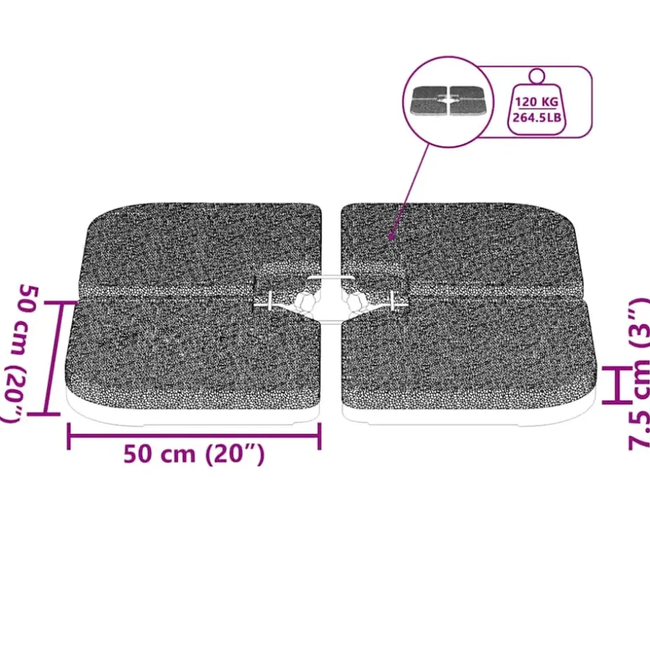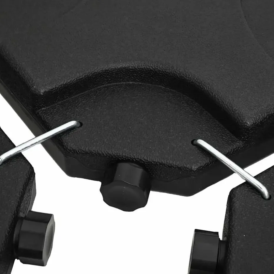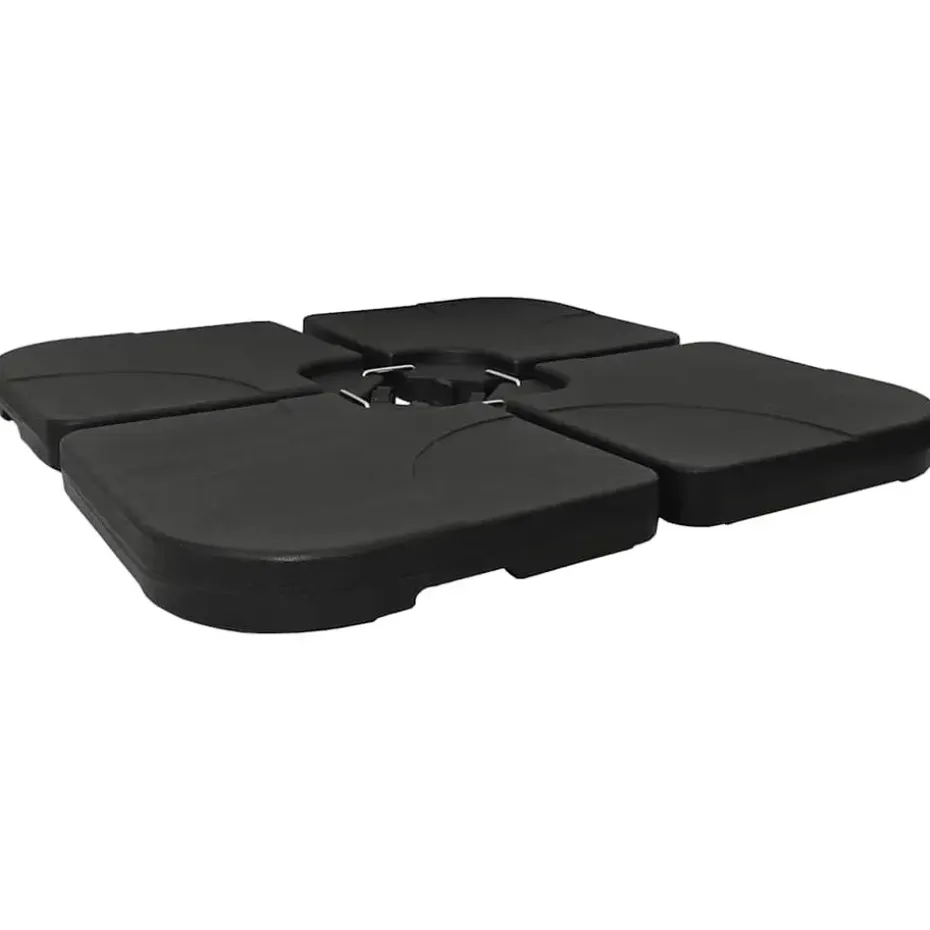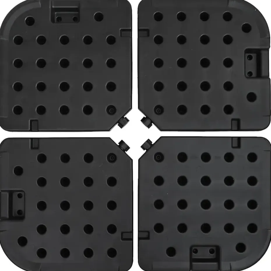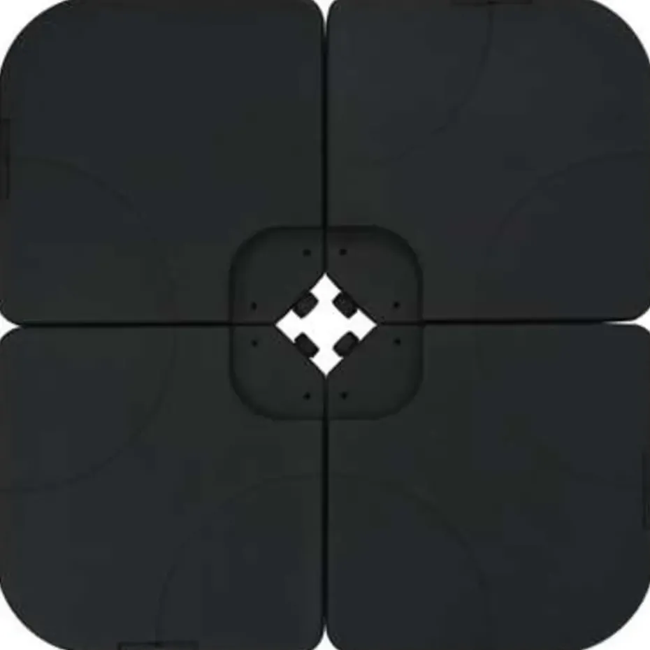 Deze parasolvoet bestaat uit vier losse onderdelen die kunnen worden gevuld met water of zand als verzwaring.// Het is een stevige basis voor uw parasol.