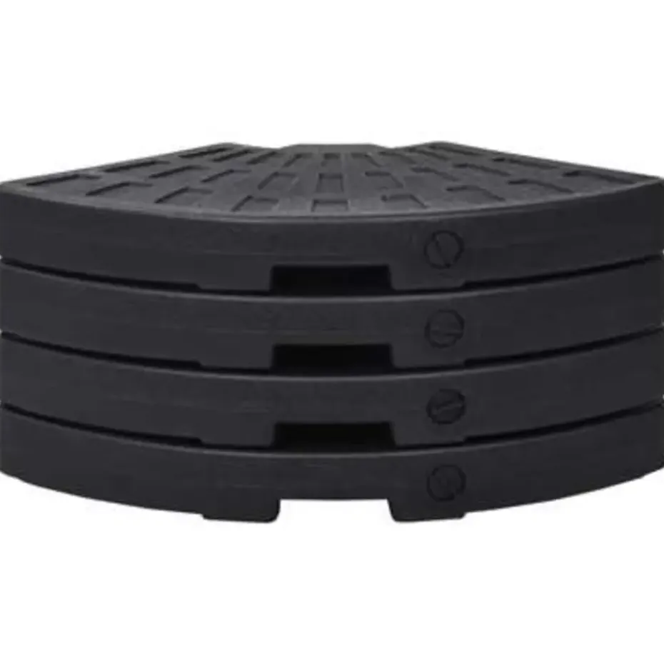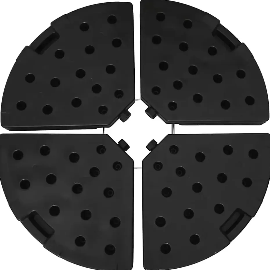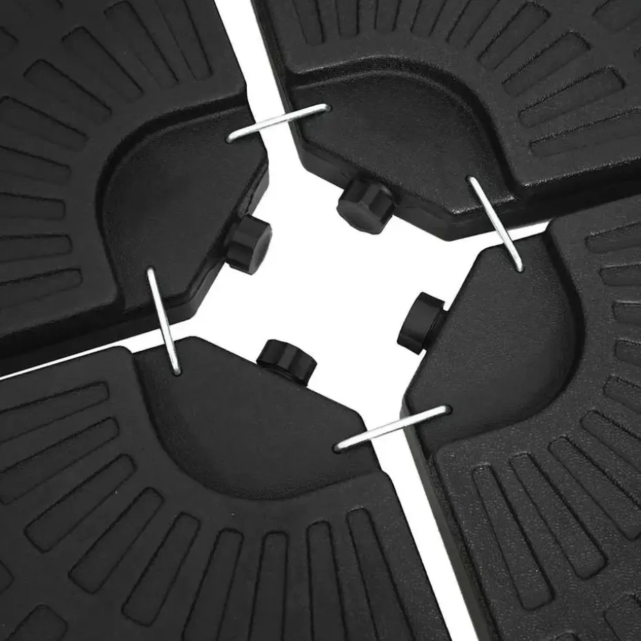Deze set is gemaakt van duurzaam HDPE-kunststof, is roestvrij en zeer duurzaam. Hij wordt geleverd in 4 afzonderlijke delen, die in totaal met ongeveer 60 L water of 72 kg zand gevuld kunnen worden. Zonder vulling is de parasolvoet lichtgewicht en, dankzij de handgreep, gemakkelijk te verplaatsen en op te bergen.