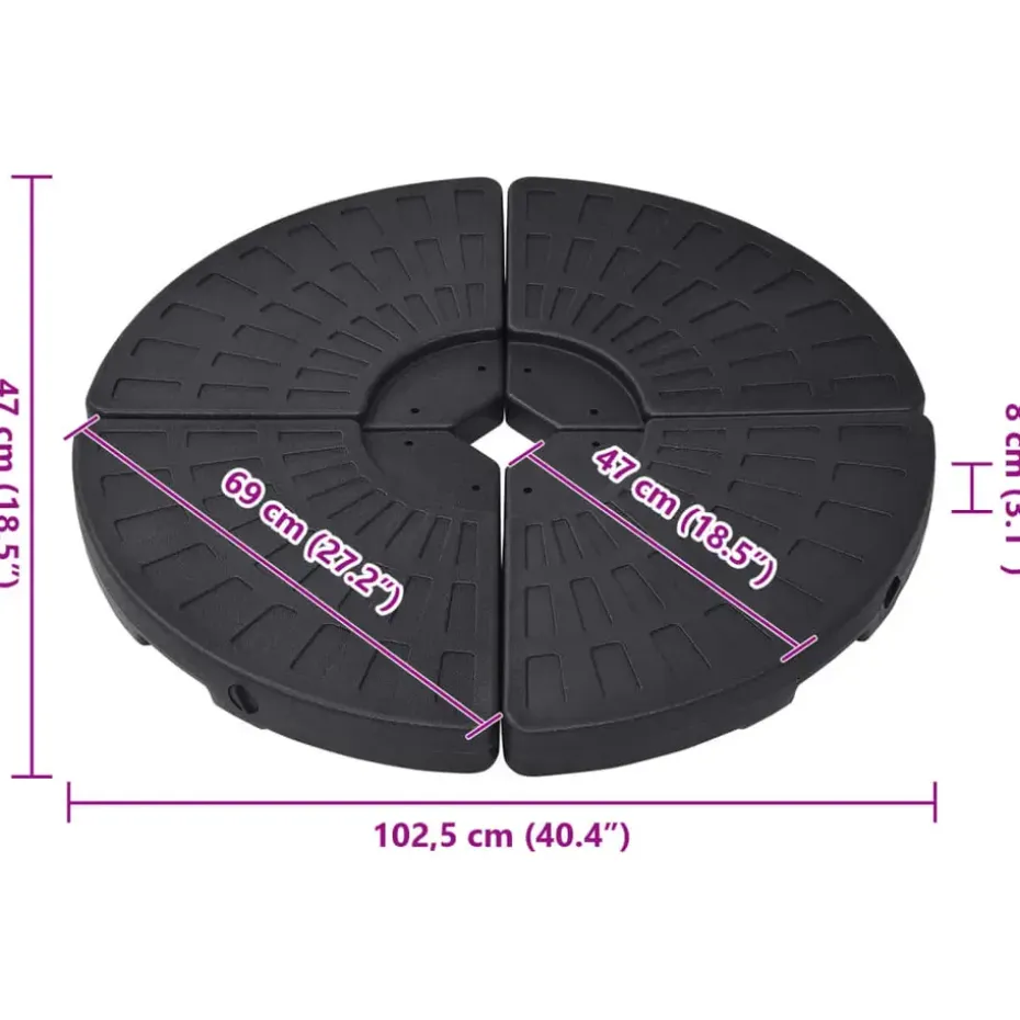 Houd je zweefparasol stabiel in barre weersomstandigheden en tijdens harde wind met onze robuuste met water/zand gevulde parasolvoet. Deze set bevat 4 parasolvoeten die ontworpen zijn voor parasol’s met kruisvoeten.