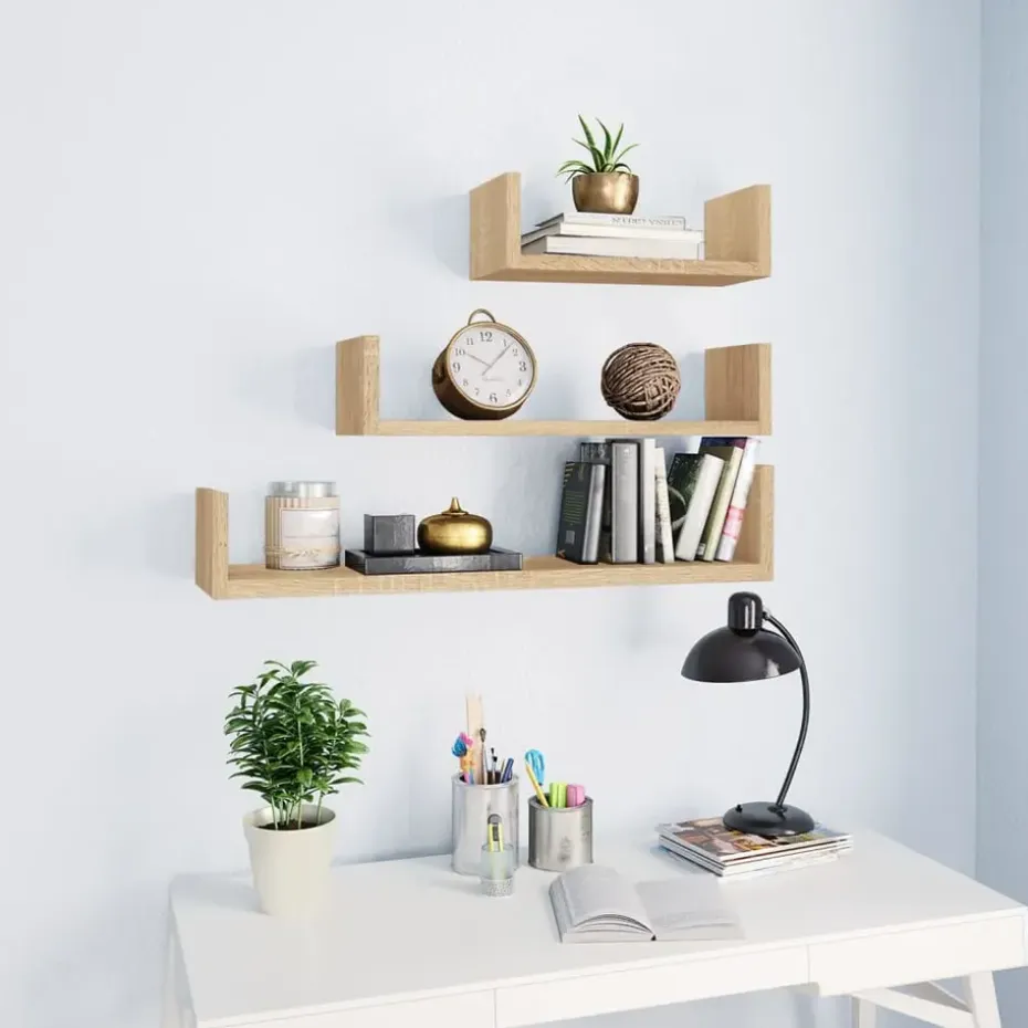 De schappen zijn gemaakt van bewerkt hout waardoor ze stevig en duurzaam zijn. Het U-vormige ontwerp biedt perfecte weergave- of opbergruimte voor boeken, cd’s, bloemen en andere spullen.