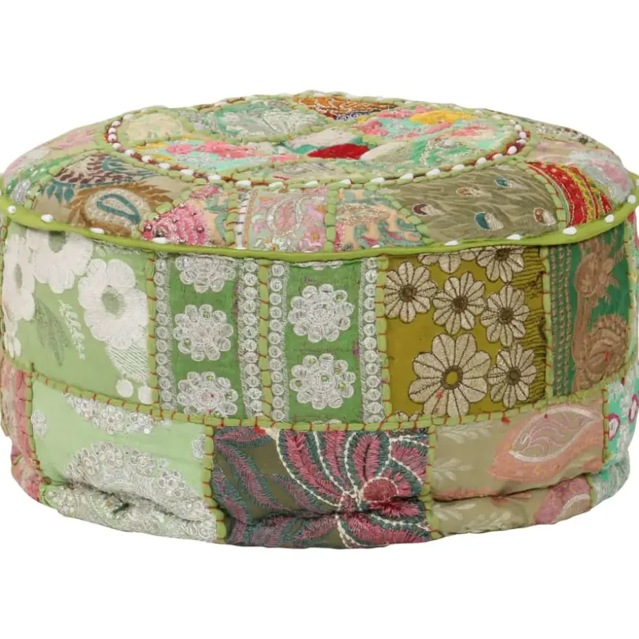 Geniet van een ontspannend moment op onze handgemaakte poef in vintage stijl! Hij wordt met zijn prachtige patchwork ontwerp een echte blikvanger in elk interieur.