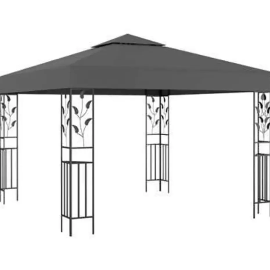 Dit tuinhuisje heeft van een stevige, stalen constructie met een duurzame en roestbestendige poedercoating die zeer duurzaam is. De luifel met ventilatie zorgt ervoor dat zon en regen het plezier niet bederven tijdens familiebijeenkomsten, barbecues, middagpicknicks en verjaardagsfeestjes. De luifel is gemaakt van hoogwaardig materiaal met een PA-coating, die de meeste schadelijke stralen blokkeert. Het prieel heeft verstevigde hoeken en klittenband waarmee het doek gemakkelijk aan het frame kan worden bevestigd.
