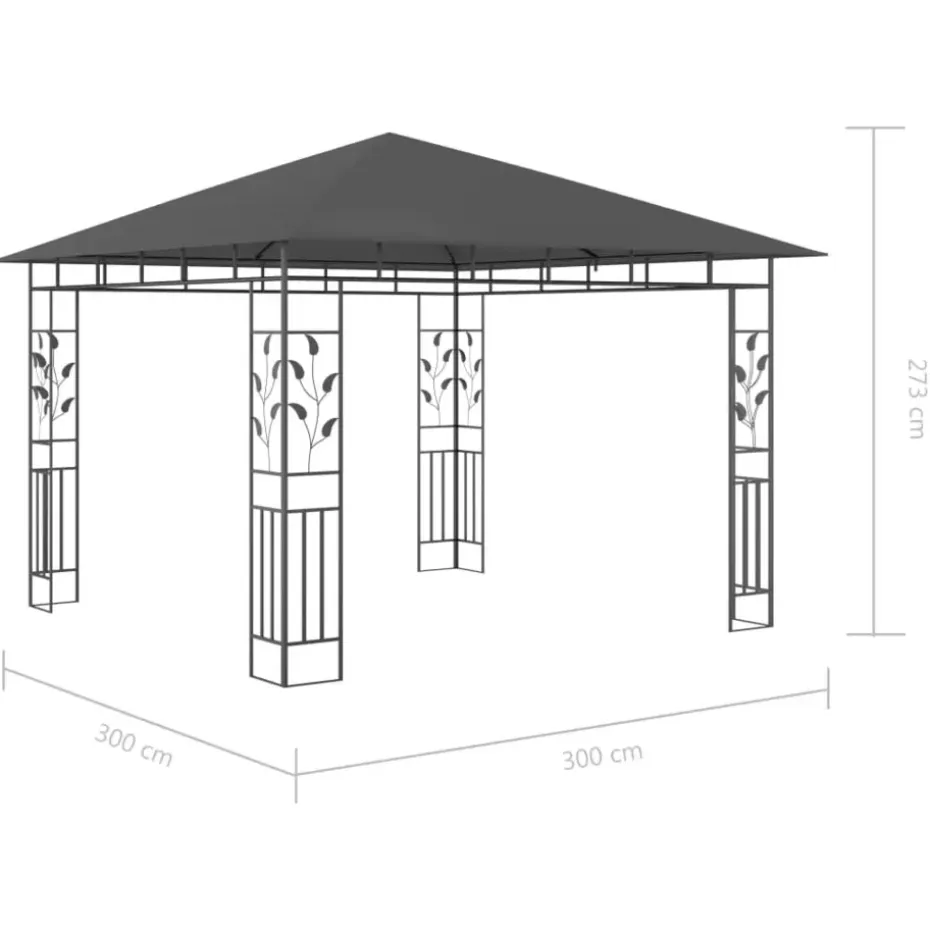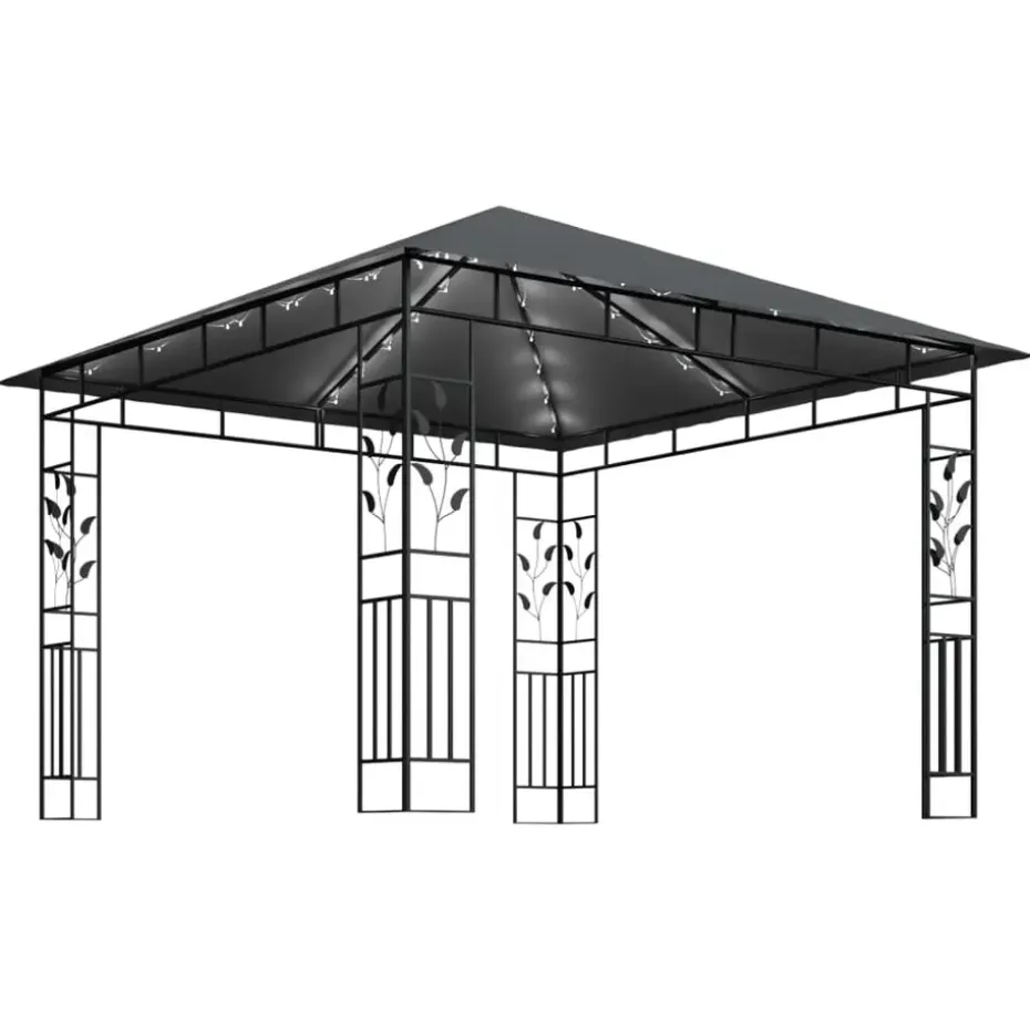 Het frame heeft een stevige metalen constructie waardoor het frame duurzaam en stabiel is. Een stoffen luifel beschermt je tegen de brandende zon, zodat je comfortabeler van je buitenactiviteiten kunt genieten. Deze tent, voorzien van muskietennetten, beschermt je tegen insecten en muggen. Zo kan je ongestoord genieten van je tijd in de tuin. Ook kan dit prieel in korte tijd worden geïnstalleerd. De lichtslinger zorgt voor een comfortabele sfeer in je tuin zodra de zon ondergaat. De verlichting werkt op zonne-energie en is dus milieuvriendelijk.