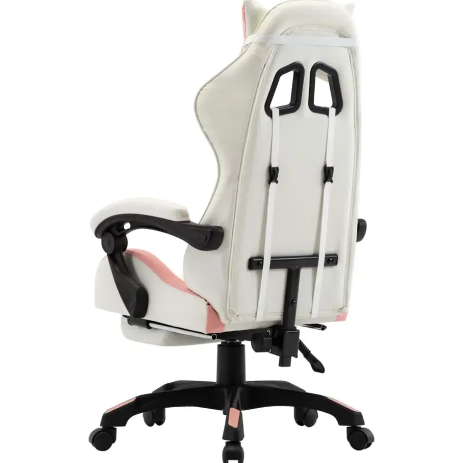 De verstelbare stoel heeft een uitklapbare voetensteun die weggestopt kan worden onder de stoel wanneer hij niet wordt gebruikt. Het meegeleverde dik gevoerde hoofdkussen en taillekussen zorgen voor extra comfort tijdens een drukke werkdag. Dankzij het gasveermechanisme is deze bureaustoel in hoogte verstelbaar. Hij kan ook naar achteren versteld worden, dus als je zin hebt om te dutten plaats je de rugleuning eenvoudig in een volledig achteroverleunende positie. Bovendien maken het 360 graden draaibare ontwerp en de 5 wieltjes het gemakkelijk om de stoel te verplaatsen.