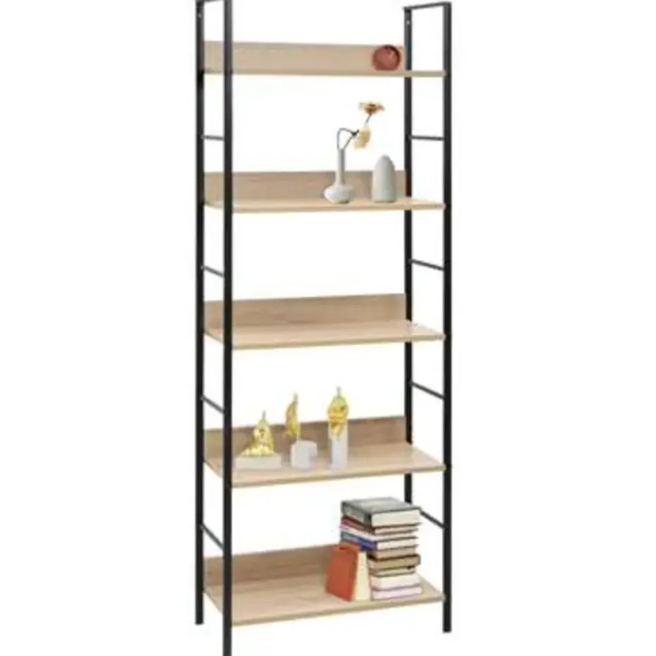 Het meubel is gemaakt van bewerkt hout, waardoor het gemakkelijk schoon te maken is met een vochtige doek De robuuste stalen structuur maakt de kast roestbestendig en draagt bij aan de industriële stijl. Het opbergrek heeft een compact ontwerp, waardoor het optimaal gebruik maakt van beperkte ruimte. Het heeft 5 lagen, waardoor je voldoende ruimte hebt voor het opbergen en plaatsen van je boekencollectie, bloemen, cd’s, dvd’s en andere decoratieve spullen.