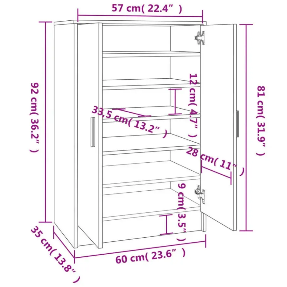 De kast is gemaakt van hoogwaardig bewerkt hout, waardoor hij een verfijnde uitstraling heeft en stabiel en duurzaam is. Dankzij de deuren kun je je schoenen goed opbergen, waardoor de privacy gewaarborgd is. De kast is daarnaast groot genoeg voor het opbergen van veel schoenen.