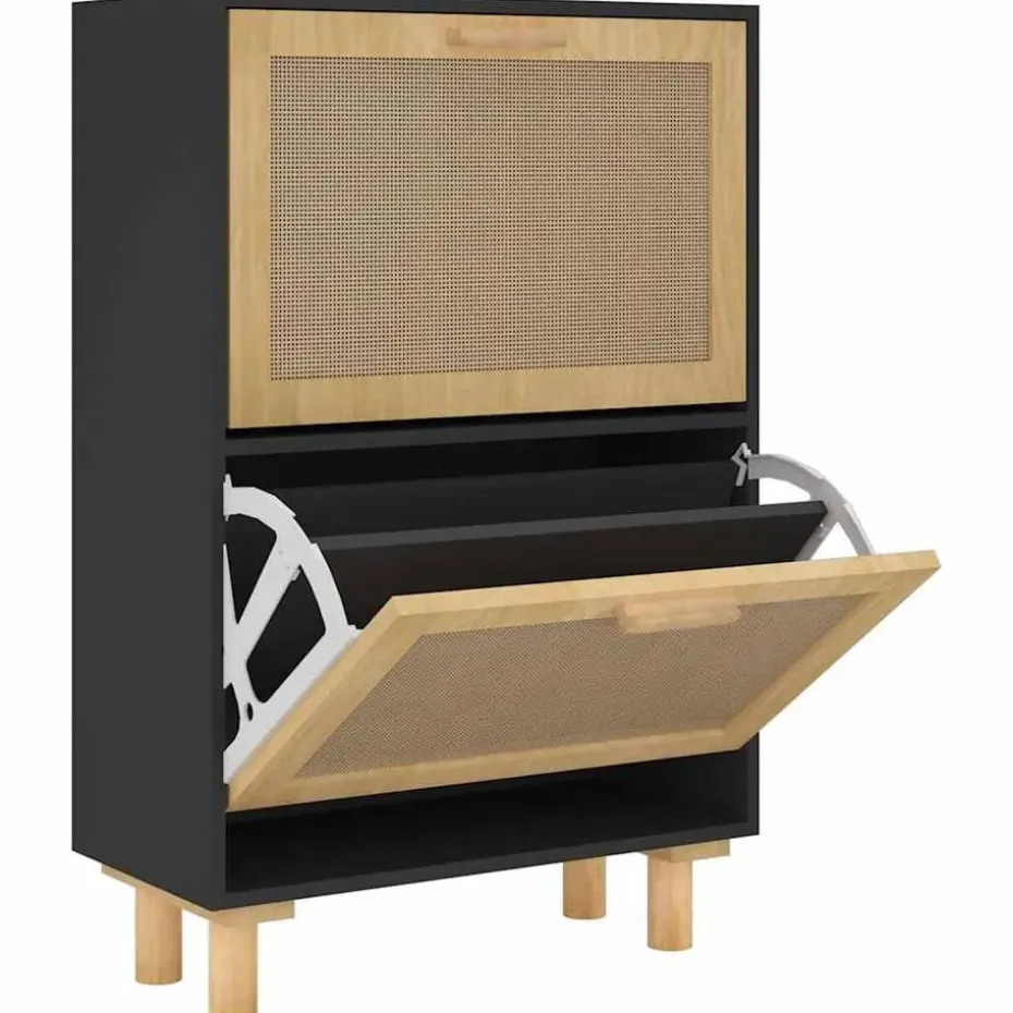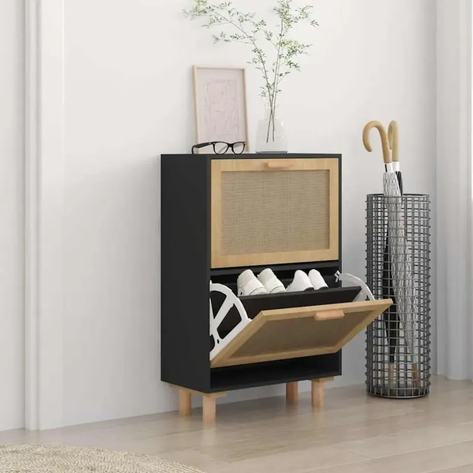 - Voldoende opbergruimte: dit schoenenrek heeft 2 lades, waardoor hij over voldoende ruimte beschikt om je schoenen geordend en binnen handbereik op te bergen. Ook voegt het natuurlijke rattan weefontwerp in de lade extra schoonheid toe.