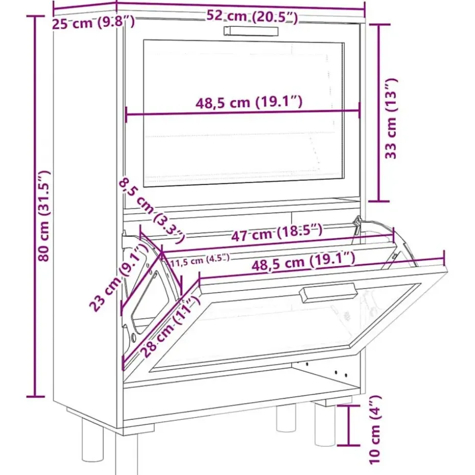 - Neerklapbare lade ontwerp: dankzij de neerklapbare lades is deze schoenenkast gemakkelijk te openen en te sluiten.