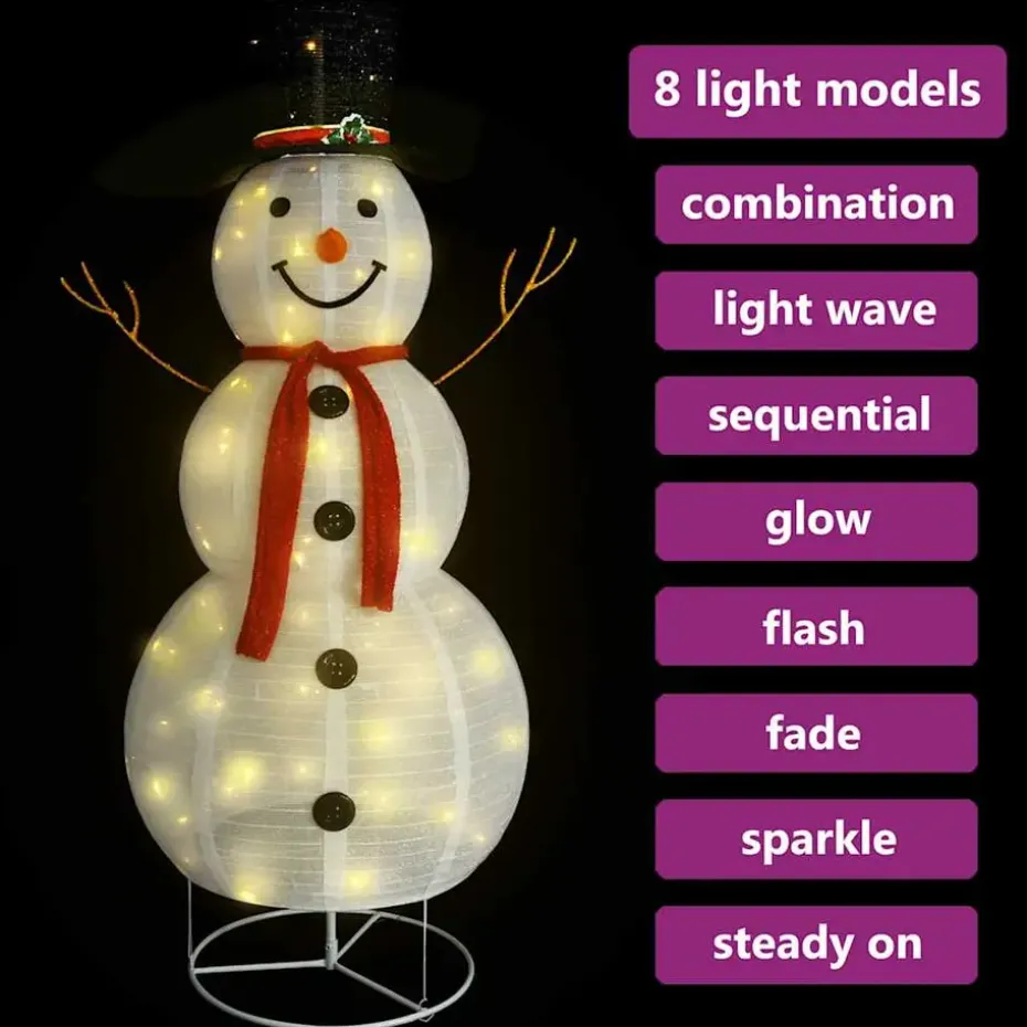 Deze kerstdecoratie is gemaakt van dikke stof. Bovendien is hij voorzien van 180 LED-lampjes, die energiezuinig en duurzaam zijn. Hij is ontworpen met 8 verschillende lichteffecten: een combinatie van alle effecten, langzaam gloeien, fonkelen/knipperen, golven, volgend/stromend water, sequentieel, constant aan en langzaam vervagend. De sneeuwpop geeft prachtig licht en creëert een magische kerstsfeer.