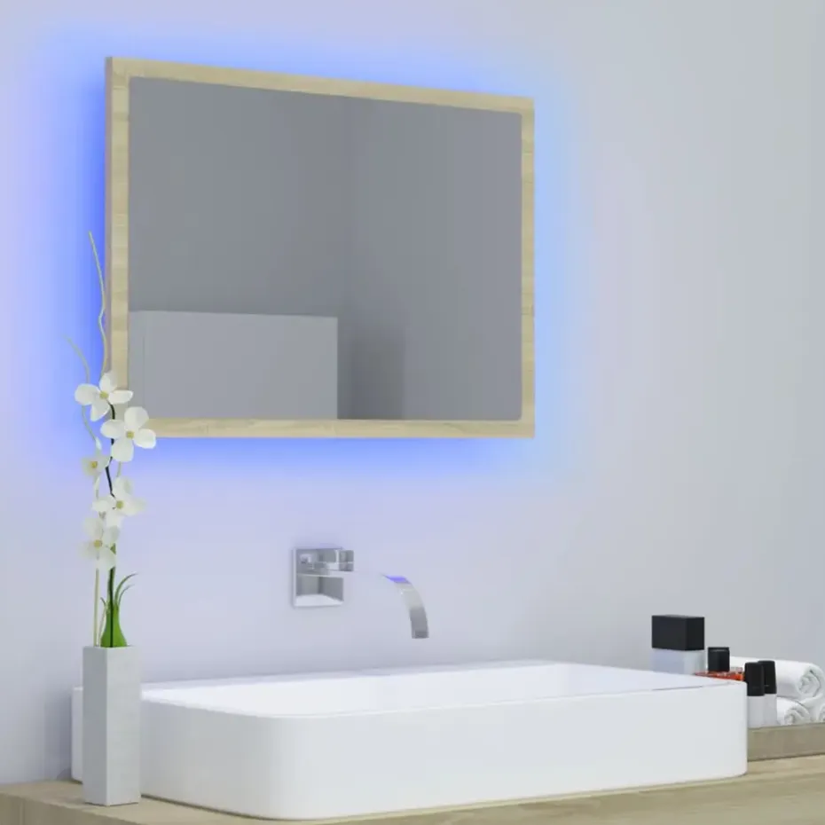 De wandspiegel is gemaakt van bewerkt hout en acryl, waardoor hij duurzaam en stabiel is. Hij beschikt over RGB-verlichting, wat betekent dat de LED-kleur aangepast kan worden. Bovendien is hij gemakkelijk schoon te maken met een vochtige doek.