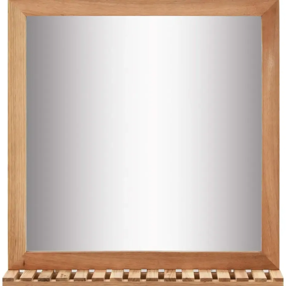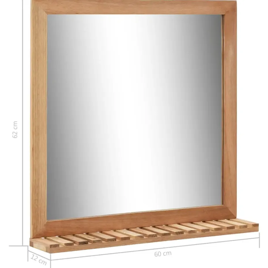 De plank is handig om kleine spulletjes op te plaatsen, zoals tandenborstels en cosmeticaproducten. De spiegellijst en het schapje zijn gemaakt van massief walnotenhout, wat de spiegel erg stevig en duurzaam maakt.