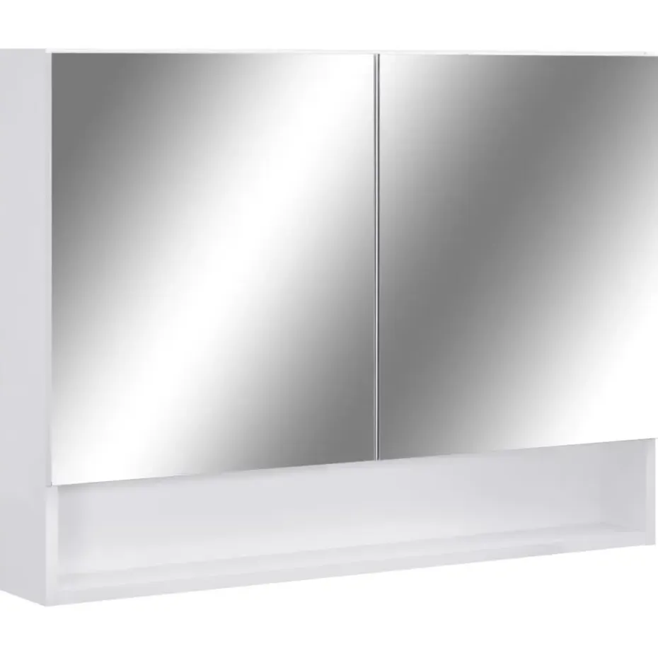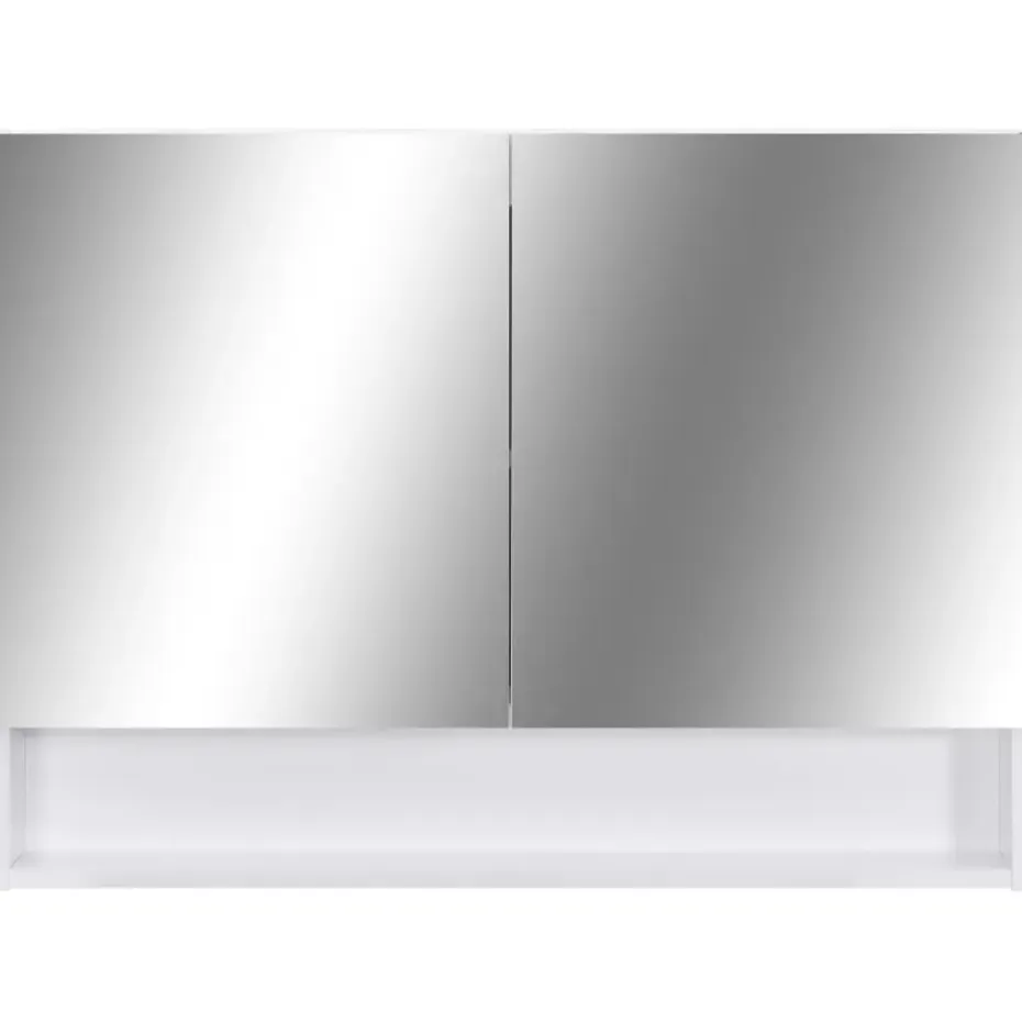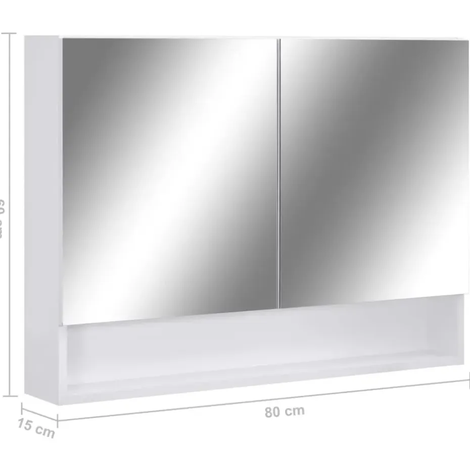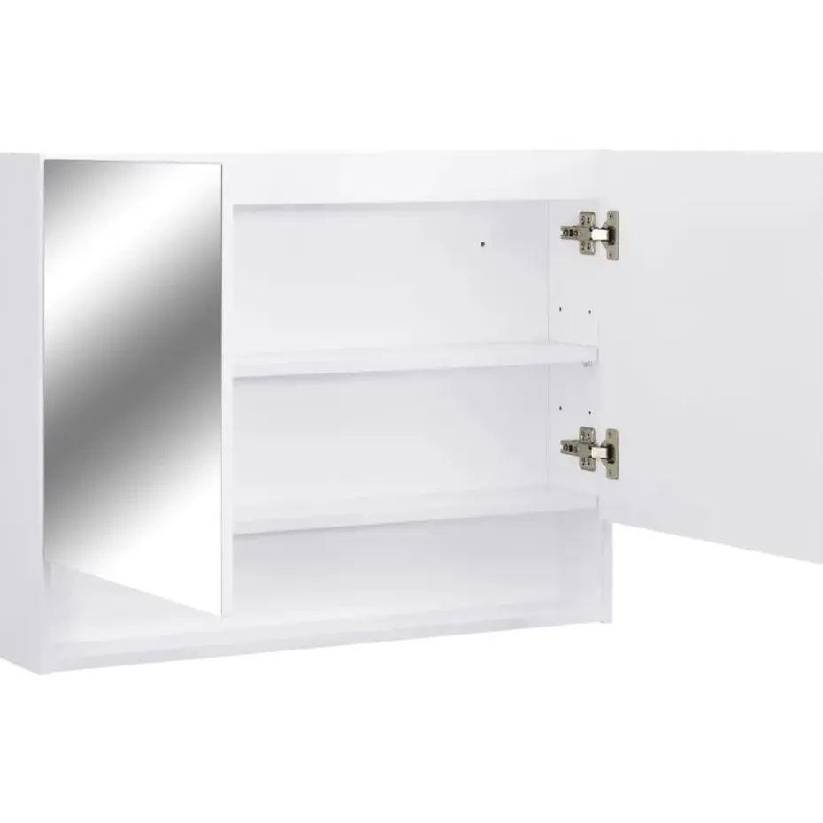De kast is gemaakt van hoogwaardig MDF-plaat met een oppervlak van melamine, waardoor langdurig gebruik is gegarandeerd. Met de knop zet je de lamp eenvoudig aan/uit. Met een energiezuinige LED-strip zie je jezelf in het meest ware licht voor het aanbrengen van make-up, verzorging en huidverzorging. De 2 deuren en 3 schappen binnenin de kast bieden voldoende opbergruimte. Ze zijn ideaal voor het opbergen van je toiletartikelen en badspullen, zoals zeep, shampoo en tandpasta, enz. In het midden van de kast zit een verplaatsbaar tussenschot. Je kunt hem installeren volgens je eigen wensen. Bovendien is hij gemakkelijk schoon te maken met een vochtige doek.
