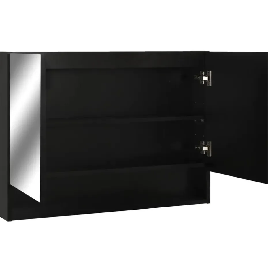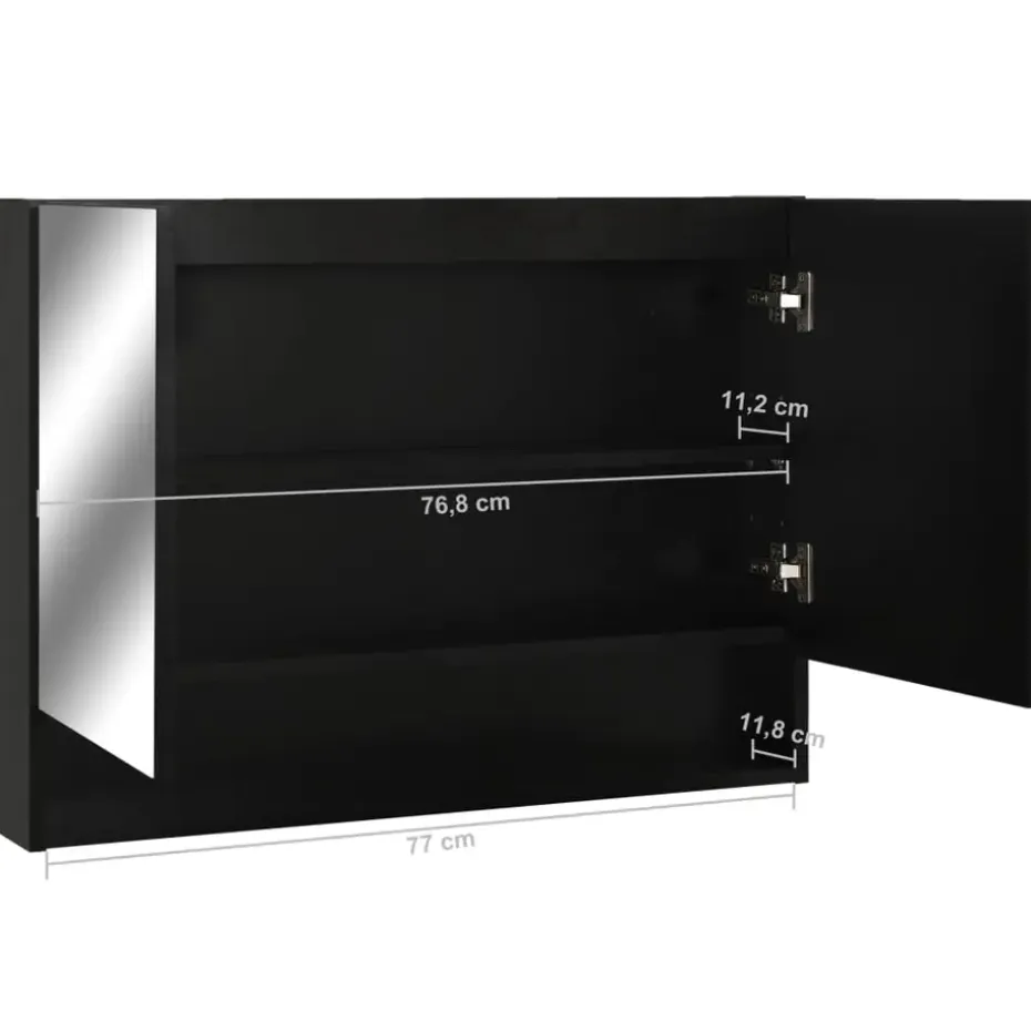De kast is gemaakt van hoogwaardig MDF-plaat met een oppervlak van melamine, waardoor langdurig gebruik is gegarandeerd. Met de knop zet je de lamp eenvoudig aan/uit. Met een energiezuinige LED-strip zie je jezelf in het meest ware licht voor het aanbrengen van make-up, verzorging en huidverzorging. De 2 deuren en 3 schappen binnenin de kast bieden voldoende opbergruimte. Ze zijn ideaal voor het opbergen van je toiletartikelen en badspullen, zoals zeep, shampoo en tandpasta, enz. In het midden van de kast zit een verplaatsbaar tussenschot. Je kunt hem installeren volgens je eigen wensen. Bovendien is hij gemakkelijk schoon te maken met een vochtige doek.
