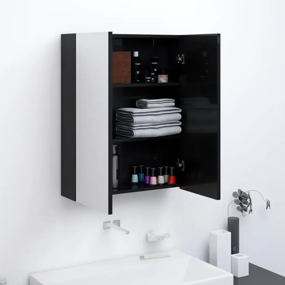 De wandspiegelkast is gemaakt van glas en MDF met melamine-oppervlak, waardoor hij duurzaam en stabiel is. De kast heeft 2 deuren en in totaal 3 vakken, waardoor hij voldoende opbergruimte biedt. Ze zijn ideaal voor het opbergen van je toiletartikelen en badspullen, zoals zeep, shampoo en tandpasta.