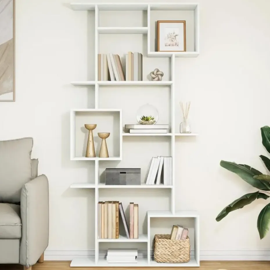 - Voldoende opbergruimte: de boekenkast heeft 9 ruime vakken en biedt voldoende ruimte om je tijdschriften, boeken, dvd’s, multimedia-apparaten en decoratieve spullen geordend en binnen handbereik op te bergen.