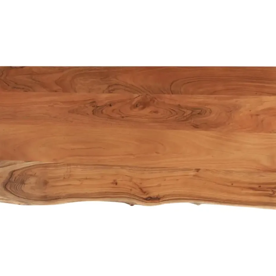- Ontwerp met natuurlijke rand: het houten meubelblad heeft een rustieke natuurlijke rand. Aangezien de knoesten, scheuren, licht gebogen vormen en kleurtinten onderdeel zijn van het hout, heeft elk meubelstuk zijn eigen unieke uitstraling.