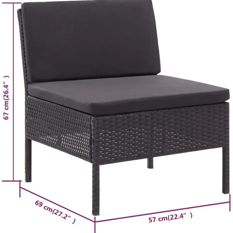 - Afmetingen middenbank: 57 x 69 x 67 cm (B x D x H)