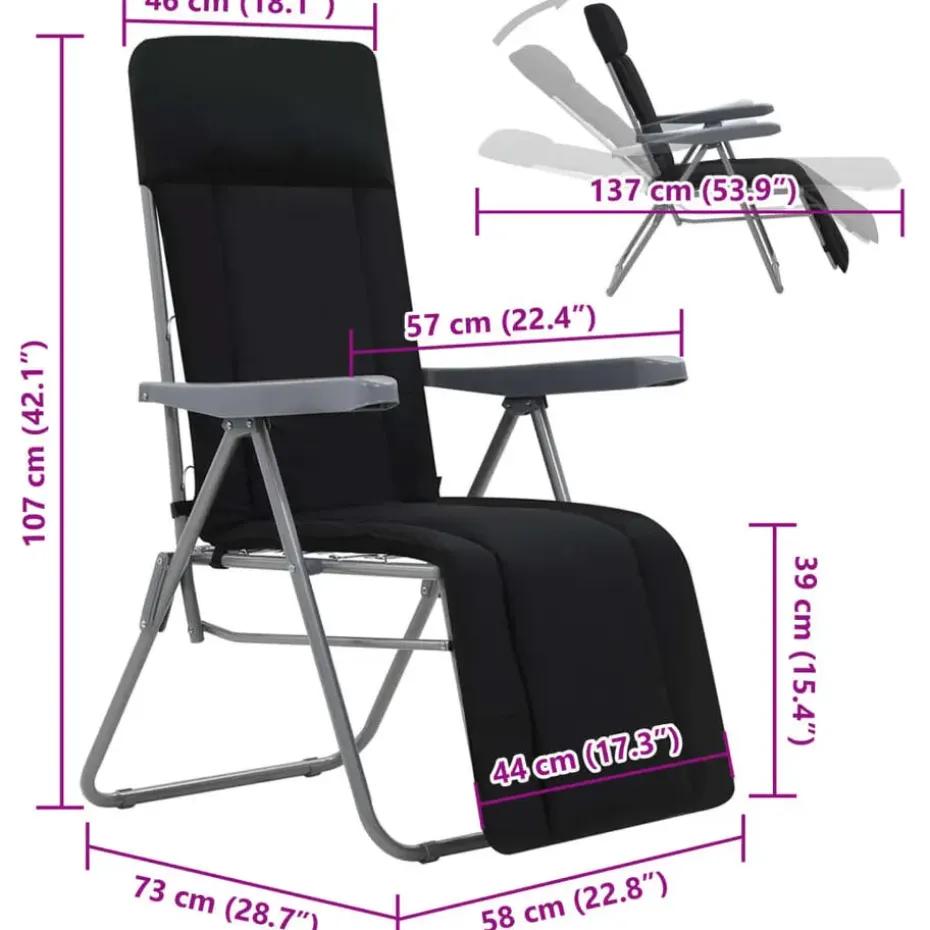 Elke campingstoel heeft een frame van hoogwaardig staal, waardoor elke stoel zeer duurzaam en sterk is. Deze tuinstoel is in 5 standen verstelbaar en heeft een kussen gevuld met spons, hij is comfortabel en veert goed terug in positie. Met de verstelbare rugleuning en voetensteun en extra dikke hoofdsteun, kan je altijd de meeste comfortabele positie voor je middagdutje vinden.