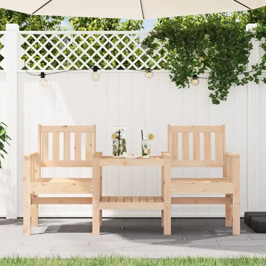 Geniet van romantische avonden op de tuinbank met geïntegreerde salontafel voor wijnglazen, snacks of koffie.