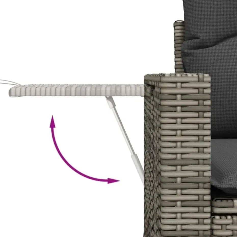 - Handige bijzettafel: dit tuinmeubel beschikt over een inklapbare bijzettafel met een gasveer op de armleuningen, waardoor je een handige plek hebt om je benodigdheden binnen handbereik te houden.
